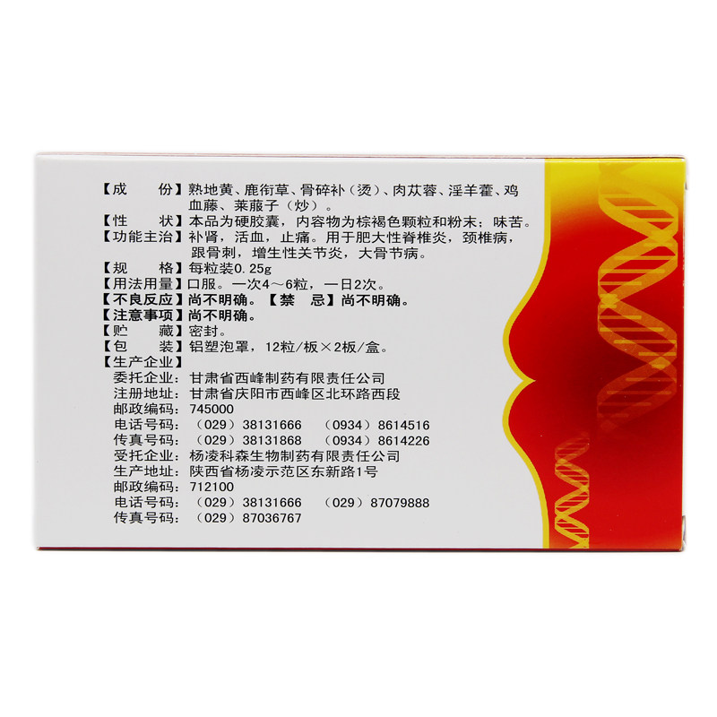 久智 Teng Huangjian Bone Capsule 0,25G*12S*2 плата/коробка