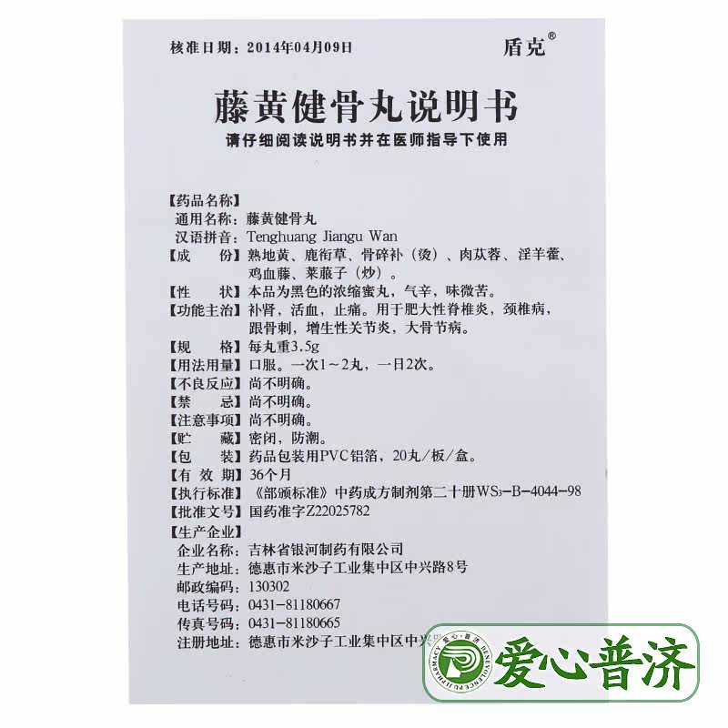 盾克 Tenghuang jianu Pill 3,5 г*20 таблетки/коробка тоника, способствующая кровообращению крови, и анальгетик используется для гипертрофического спондилита шейного спондилоза и костей Гипертрофический артрит