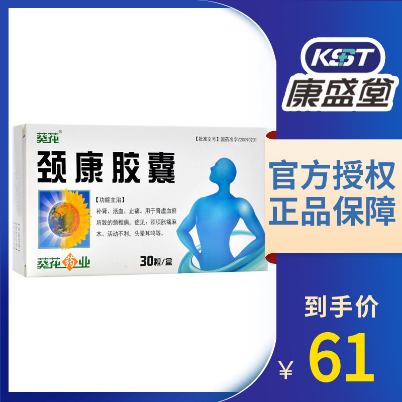 Бесплатная доставка] Капсула капсулы подсолнечника 0,4 г*30 капсулы/коробка*3 коробки ушей спондилоза шейки матки, головокружение, боль в шее, боль, питательница почек активирует кровь