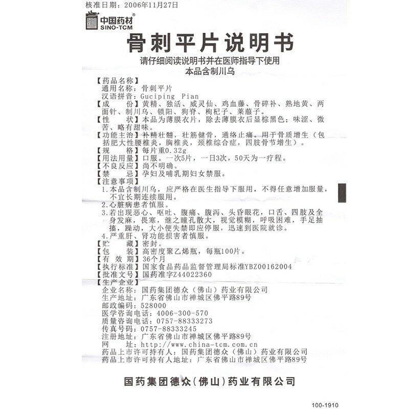 同济堂 Плоская таблетка кости шпоры 0,32 г*100 Таблетки/Коробка с гиперплазией шейки матки шейки матки