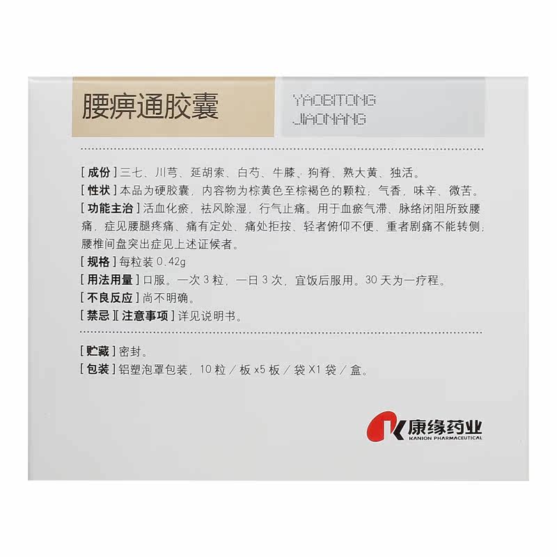 康缘 Капсула поясничного паралича 0,42 г*50 Капсулы/ветер удаления коробки, осушиление крови, заставление крови, обезболивание боли, поясничный межпозвоночный диск, ревматизм, боль в пояснице и боль в ногах, головокружение, головокружение, боль в крови кровь талии крови.