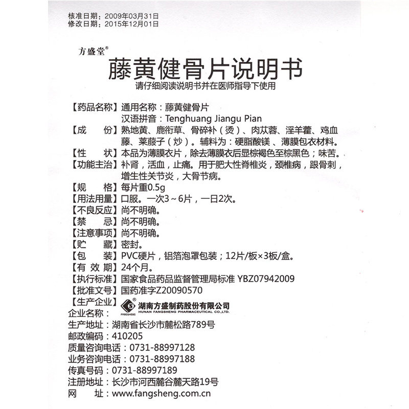 方盛堂 Tenghuangjian Bone Film 0,5 г*36 таблетки/коробка