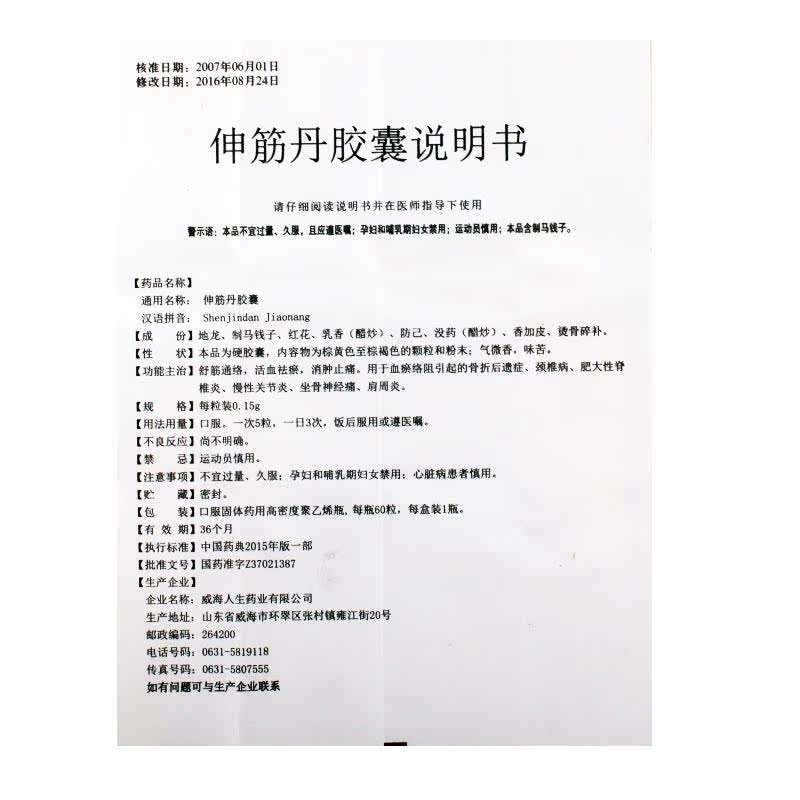 Всего 8,9 Юань/Коробка] Жизнь растягивает капсулы Дэна Дэна 0,15 г*60 метилонов/коробки Шудзин Тонглуо Активация Кровавая удаление крови, стазис, обезболивание, шейки матки спондилит Ишич