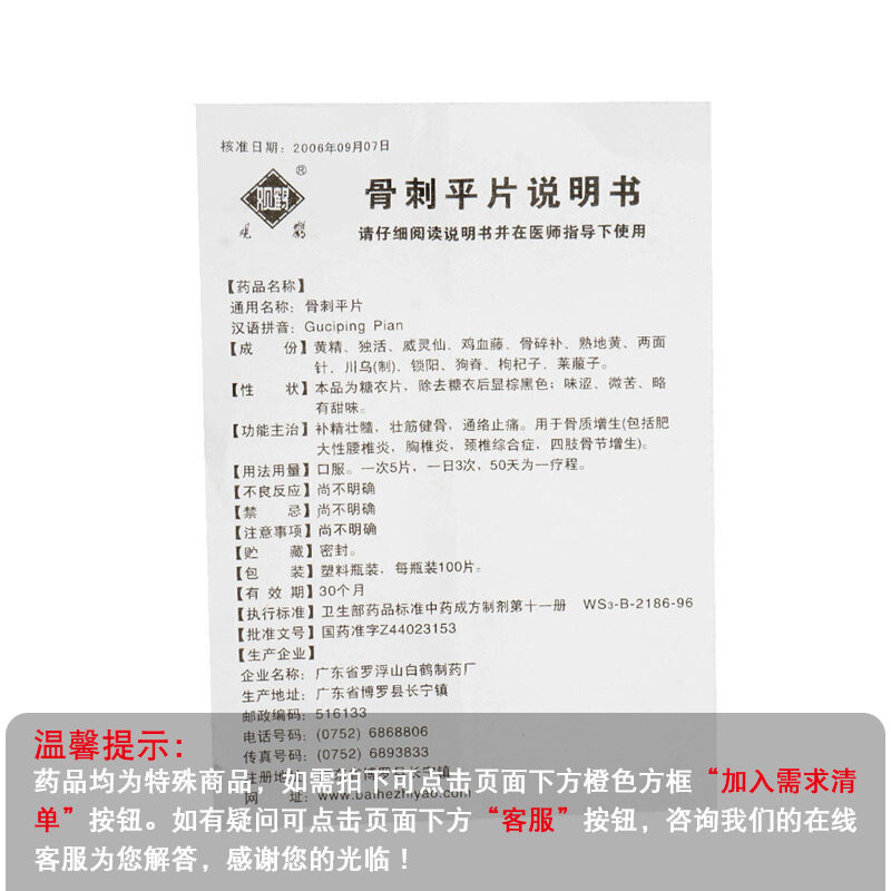 [100 таблеток Гуанхе -костяных шпоров плоские таблетки*1 бутылка/коробка/коробка эссенция и проходящая кость, проходящая оптическая антиптическая оптическая оптическая оптическая оптическая пропаганда, включающая гипертрофическая поясничная позвоночник грудь.