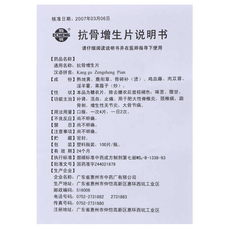 鹅城 100 таблеток антибоновых гиперплазийных таблеток*1 бутылка/коробка Аутентичный шейный спондилоз гипертрофический спондилит и гиперплазия кости гиперплазия среда пожилой костяной кости заболевание против гиперплазии гиперплазия гиперплазия кости гиперплазия