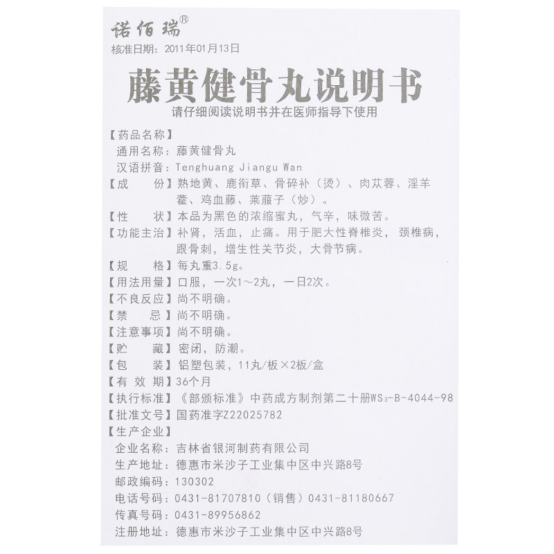 诺佰瑞 Tenghuang jianu pill 3,5 г*22 таблетки тоники, способствуя кровообращению крови и обезболивающей боли спинатита шейного спондилоза шейки матки