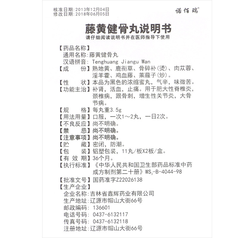 诺佰瑞 Teng Huangjian Bode Pill 3,5 г*22 таблетки/пополнение пополнения коробки не -кидней гемэтри, анти -ласковая облегчение используется для гипертрофического воспаления спинала шейки матки и гиперплазия кости гиперплазия гипербоны