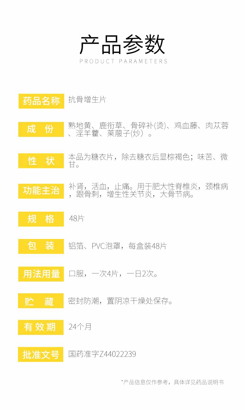 白云山 Антионо -гиперплазия таблетки 48 таблетки/ящик тонизированный кровообращение и облегчение боли используются для гипертрофического воспаления позвоночника шейки матки и гиперплас костей Гиперплас Артрит