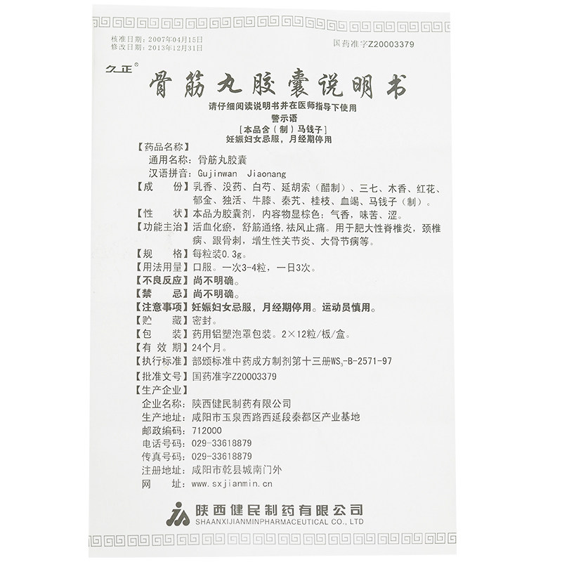 久正 Капсулы таблеток кости Цзяньмин кости 0,3 г*24 капсула, способствующие кровообращению, удаляя стаз крови и увлажняющую кровообращение, удаление ветра и облегчения, гипертииджит, подлинный лекарственное средство, YQ