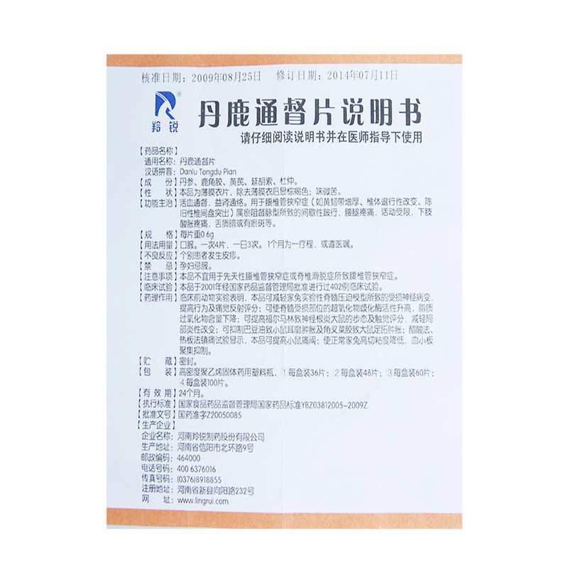 羚锐 Данлу Тонг Губернатор Пленка 0,6 г*36 Таблетки*1 бутылка/коробка прерывистое покрытие поясничного поясницы и боли в ногах ограничена болезненностью и болью в нижних конечностях