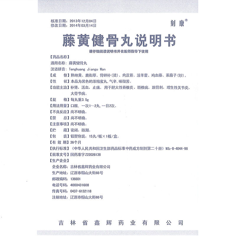 刻康 Tenghuang jianu pill 3,5 г*15 таблетки/коробка z
