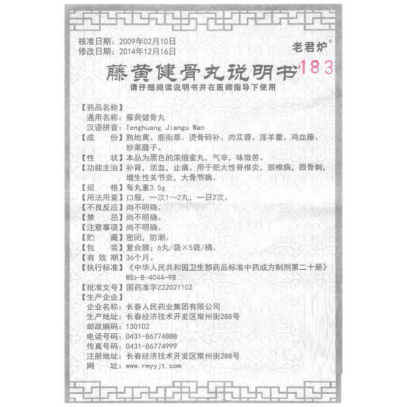 老君炉 Tenghuang jianu Pill 3,5 г*30 таблетки/коробка добавок почечной кровообращение и облегчение боли используются для гипертрофического воспаления позвоночника