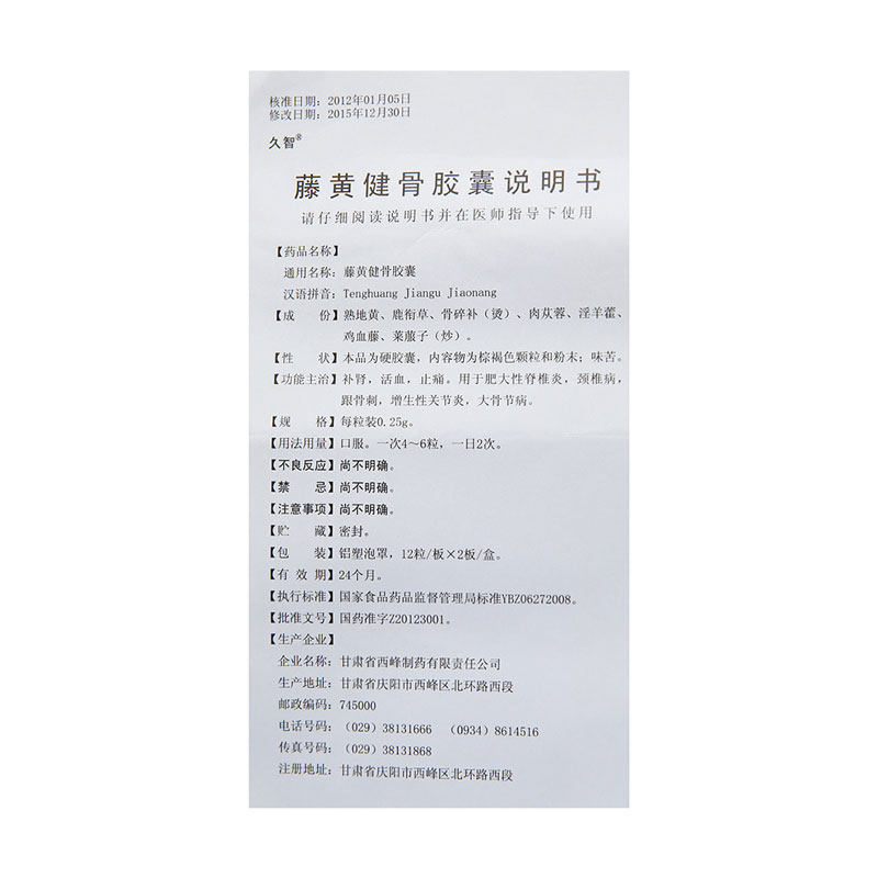 久智 Teng Huangjian Bone Capsule 0,25G*12S*2 плата/коробка