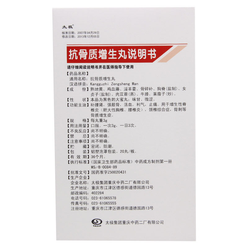 太极 Анти -салона гиперплазия таблетки 3G*20 таблетки/ящик шейки матки поясничный шейный шейный шейный шейный шейный шейный шейный шейный шейки эульс