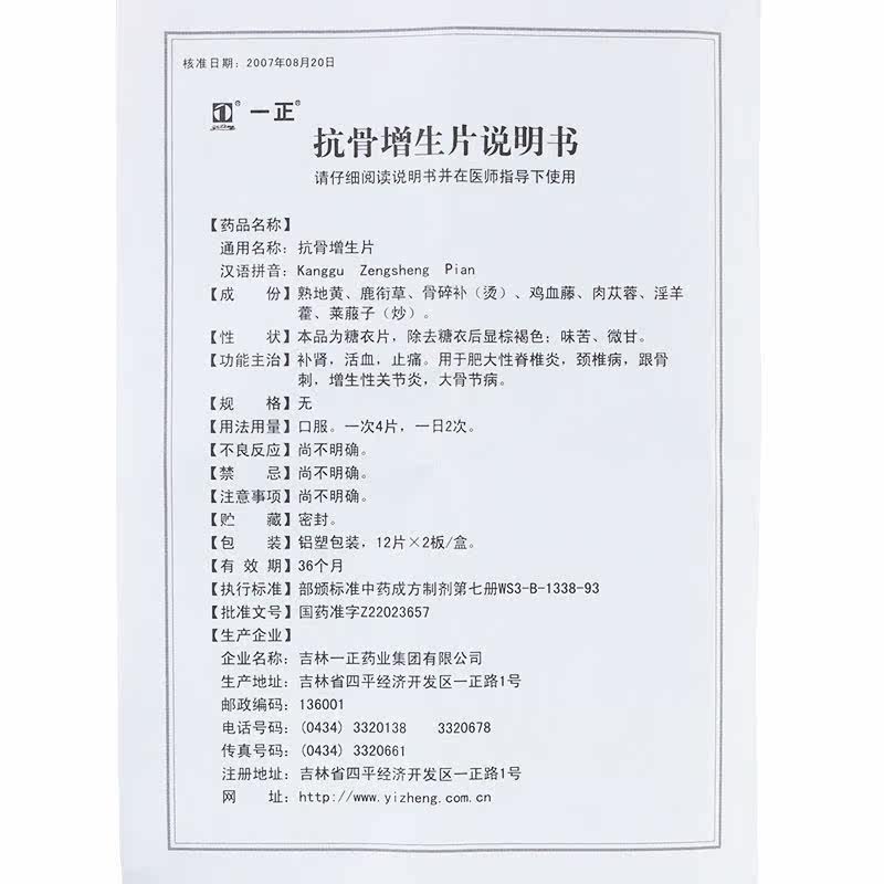 一正 Антиобоновая гиперплазия Таблетки 24 таблетки/коробка SXT TONIC Циркуляция почечной крови и обезболивание используются для гипертрофического спондилита шейного спондилоза и гиперпластический артрит костей