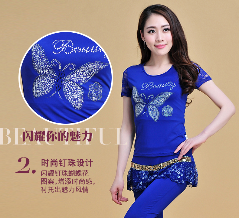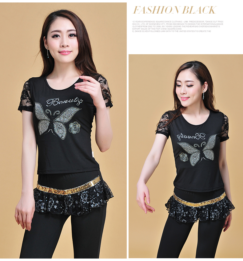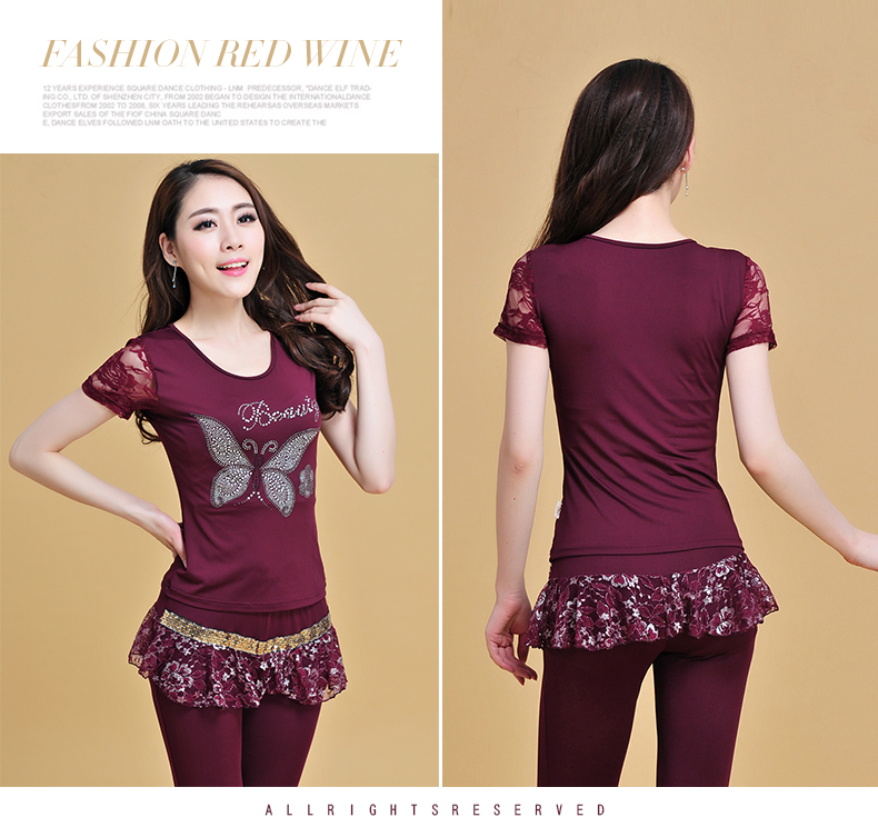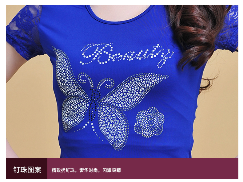 Летняя кружевная танцующая футболка, короткий рукав, круглый воротник