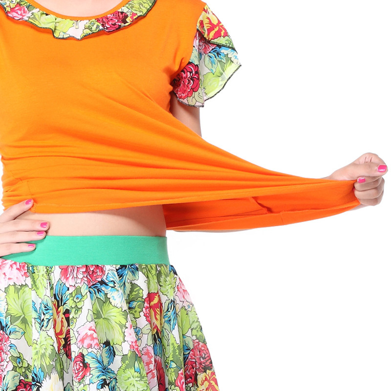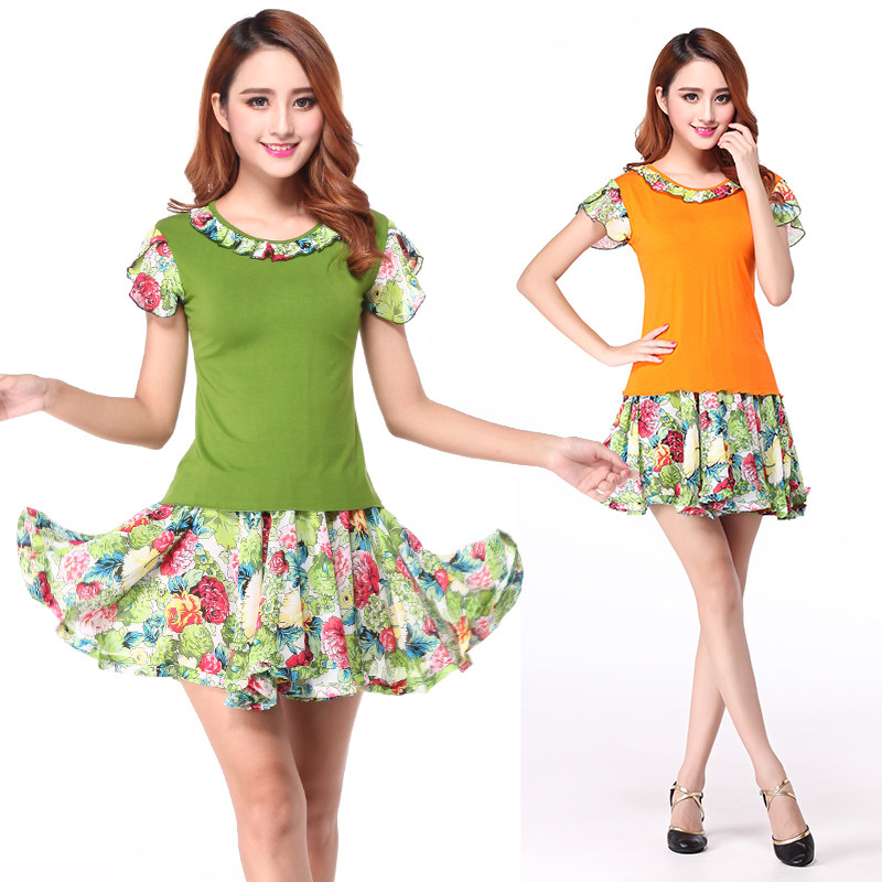 涪舞 Летняя прохладная вместительная и большая танцующая мини-юбка, комплект, 2020, короткий рукав, цветочный принт