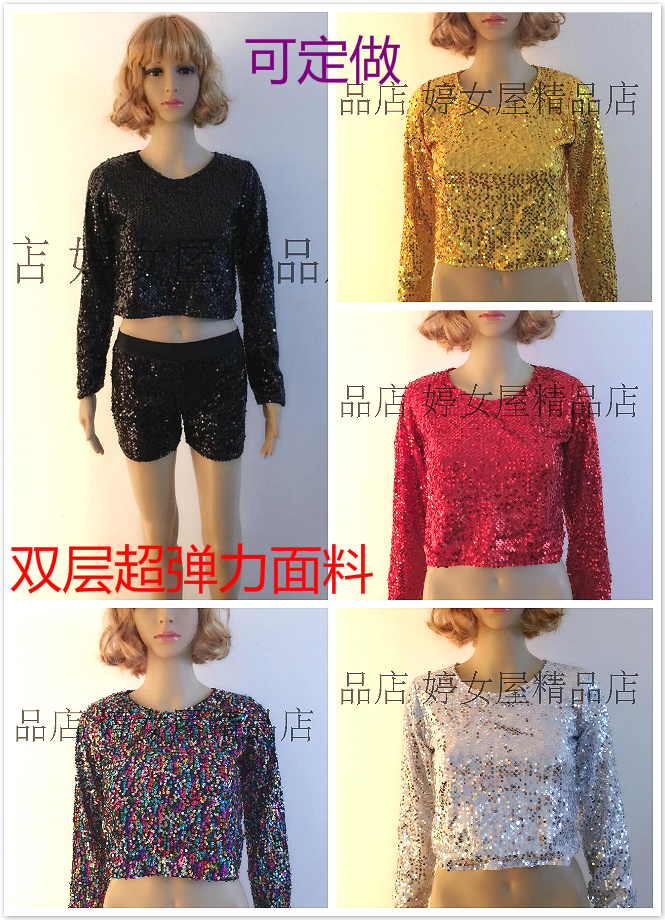 Костюм, блестящие сексуальные блестки для ногтей, лонгслив, круглый воротник, по фигуре