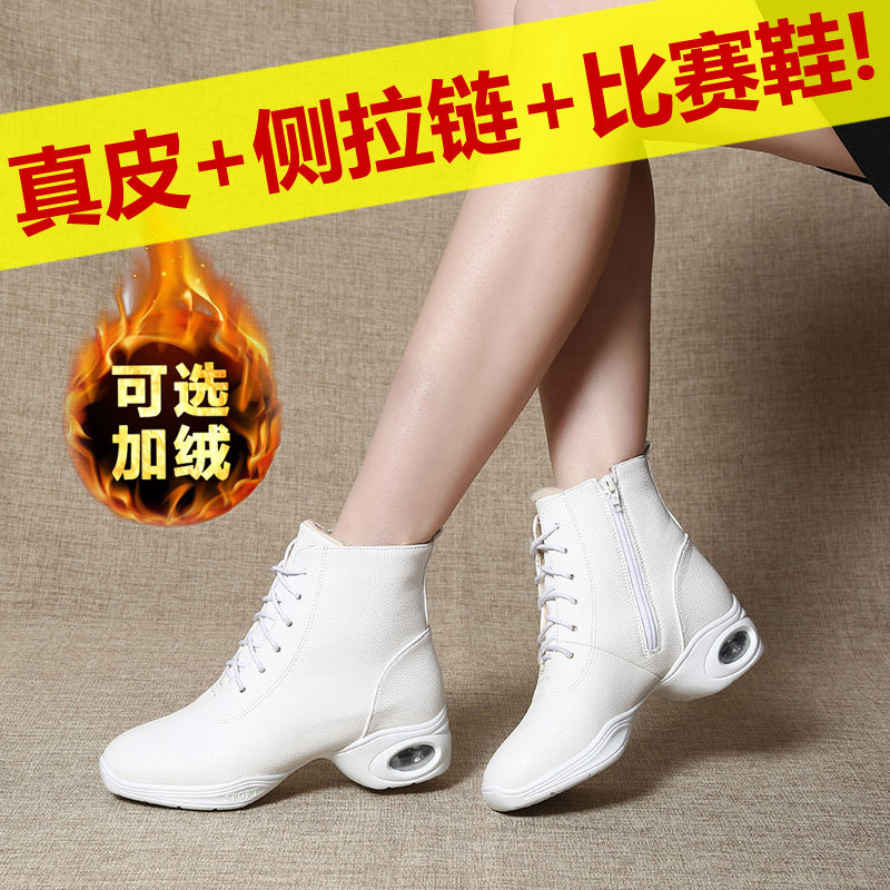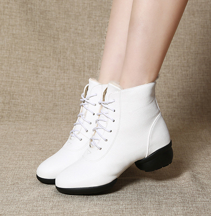 Обувь, высокие ботинки, белые туфли, танцующие короткие сапоги, мягкая подошва, из натуральной кожи, осенняя
