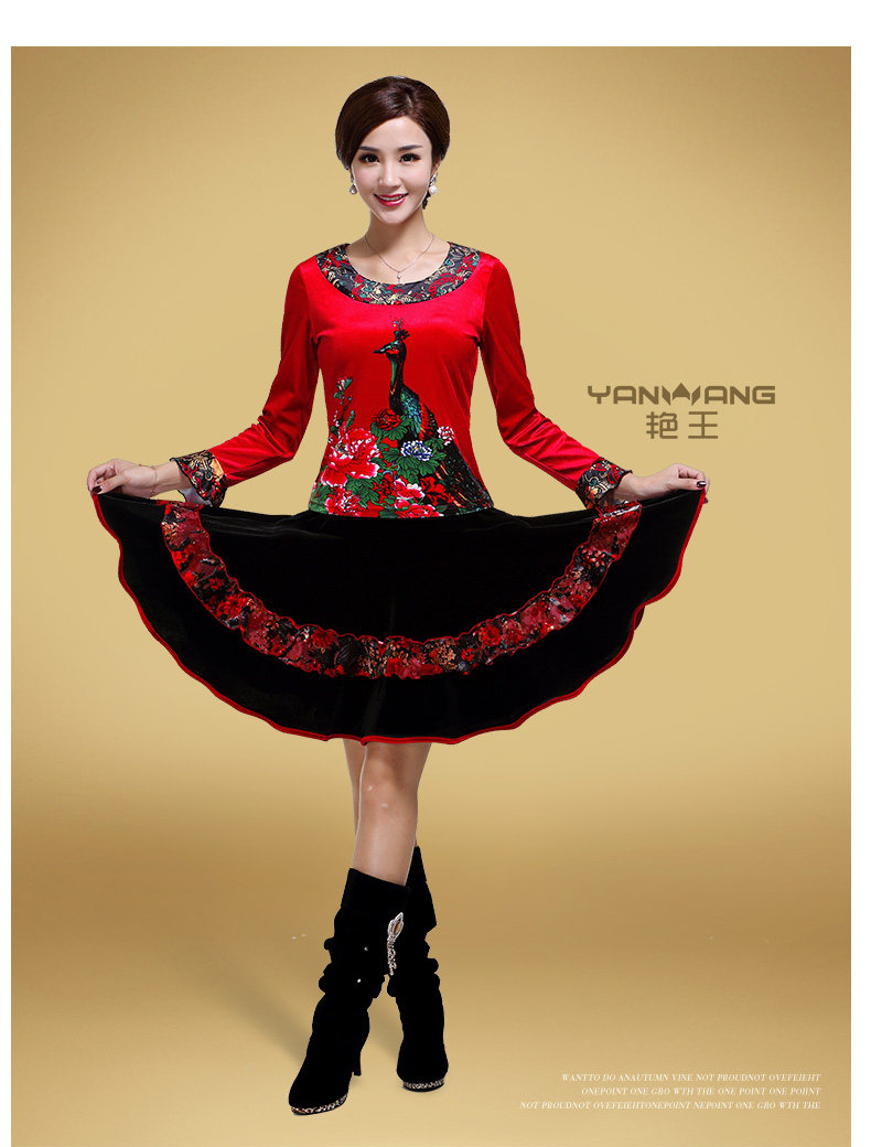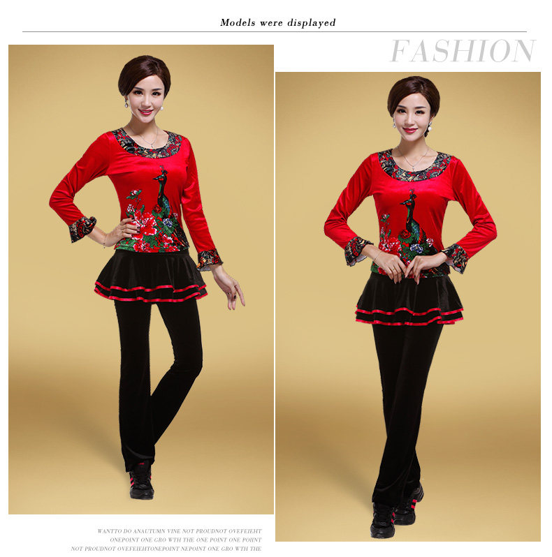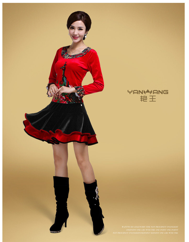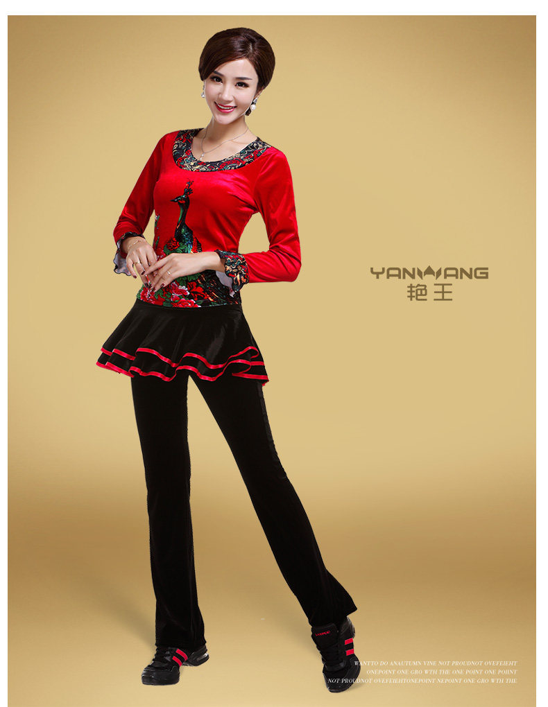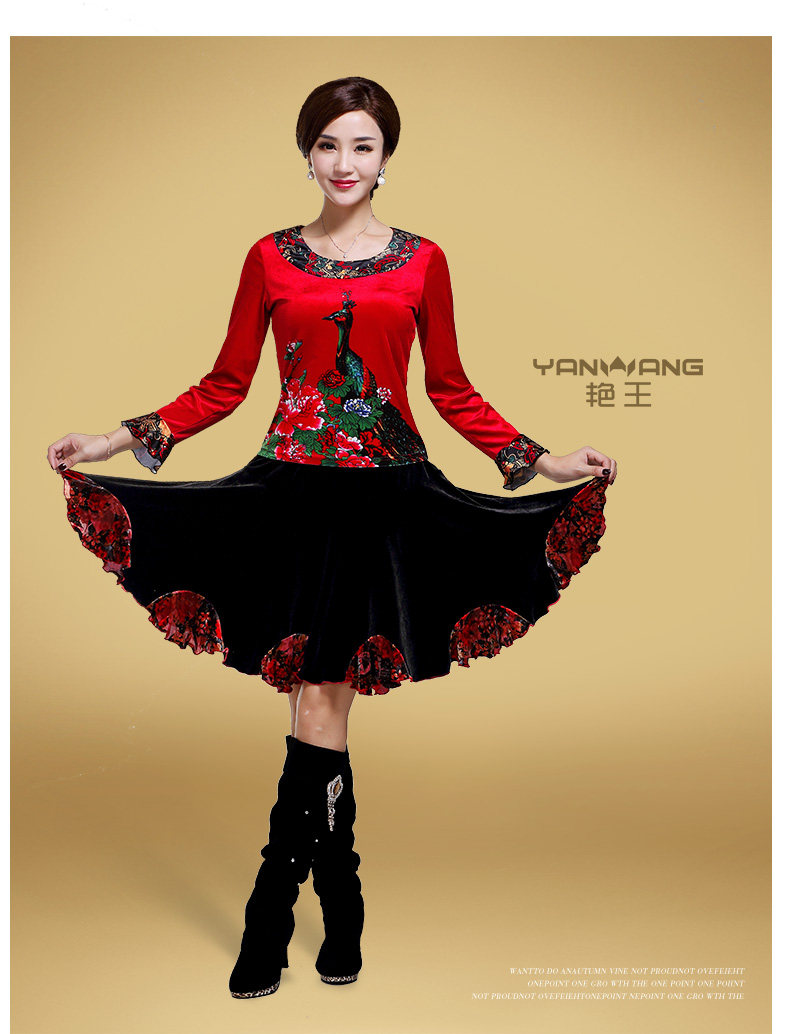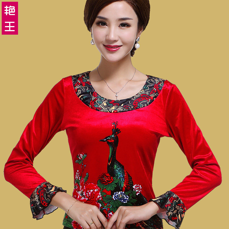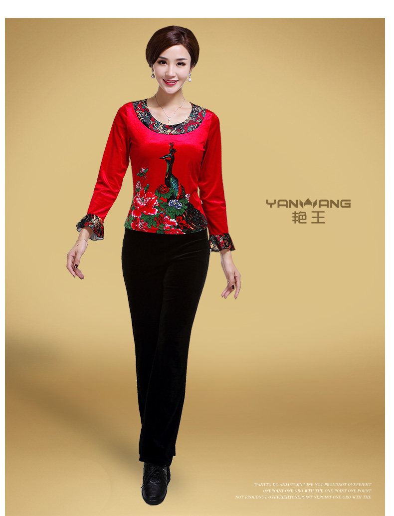 艳王 Демисезонный костюм, лонгслив, бархатное термобелье, для среднего возраста, большой размер, осенний