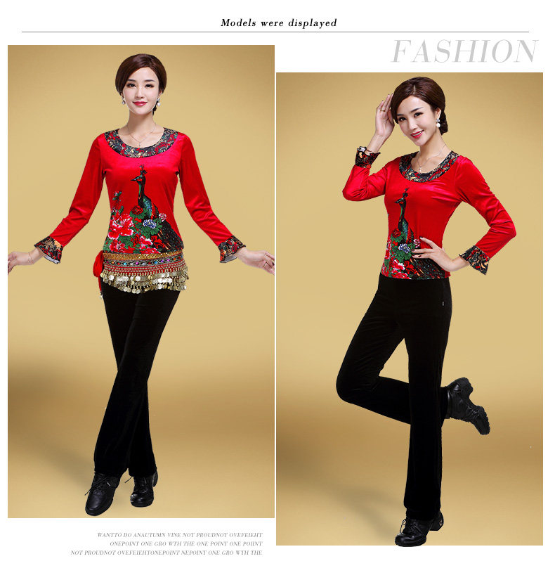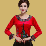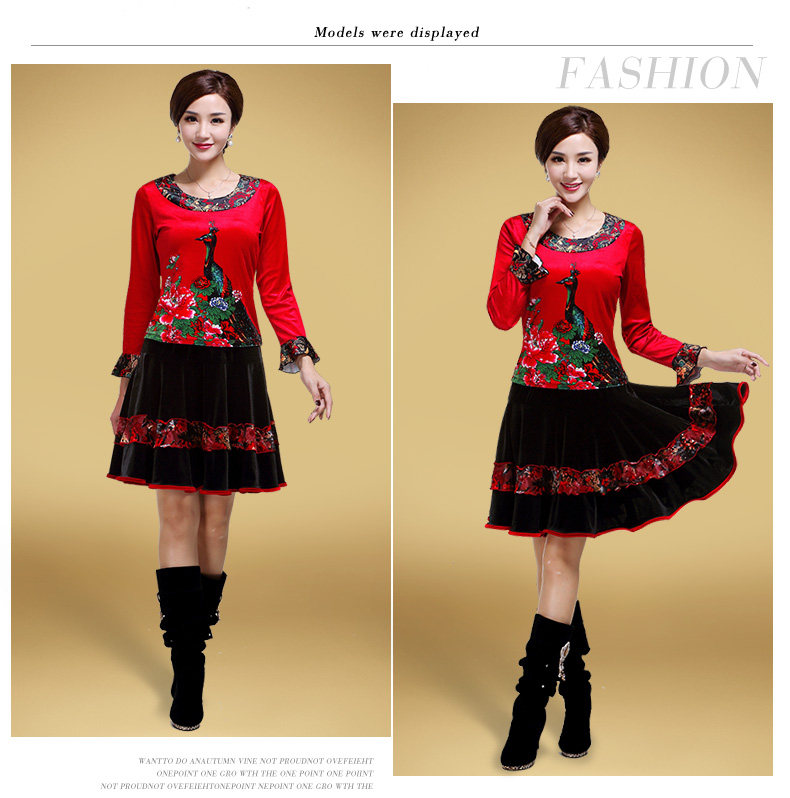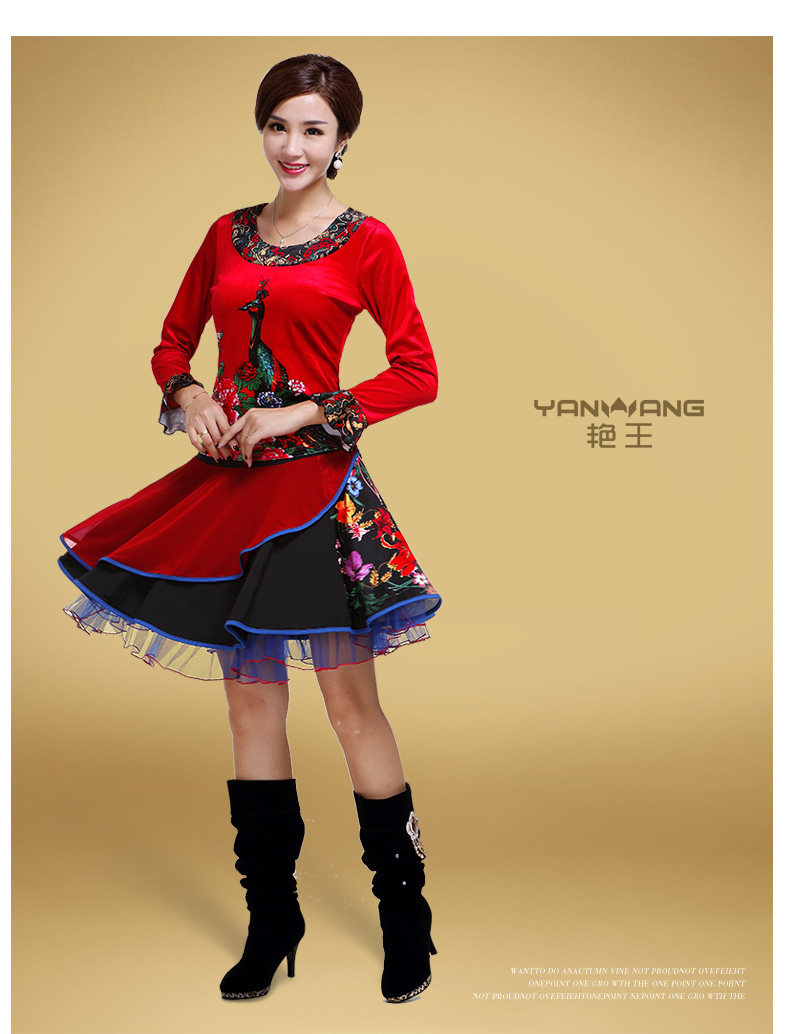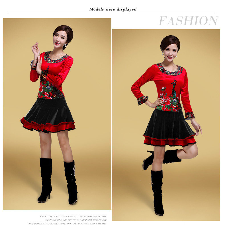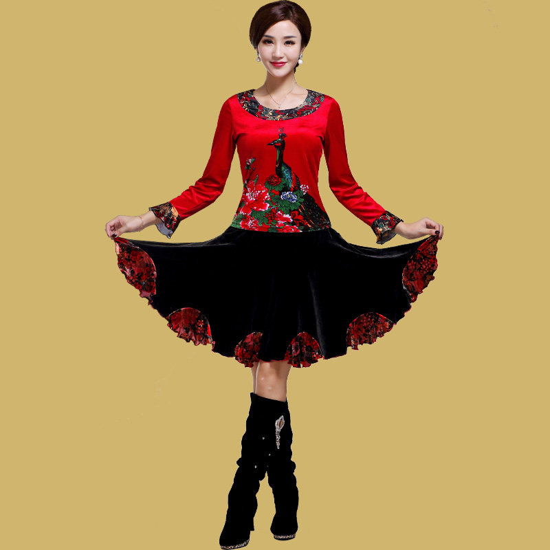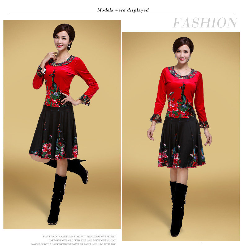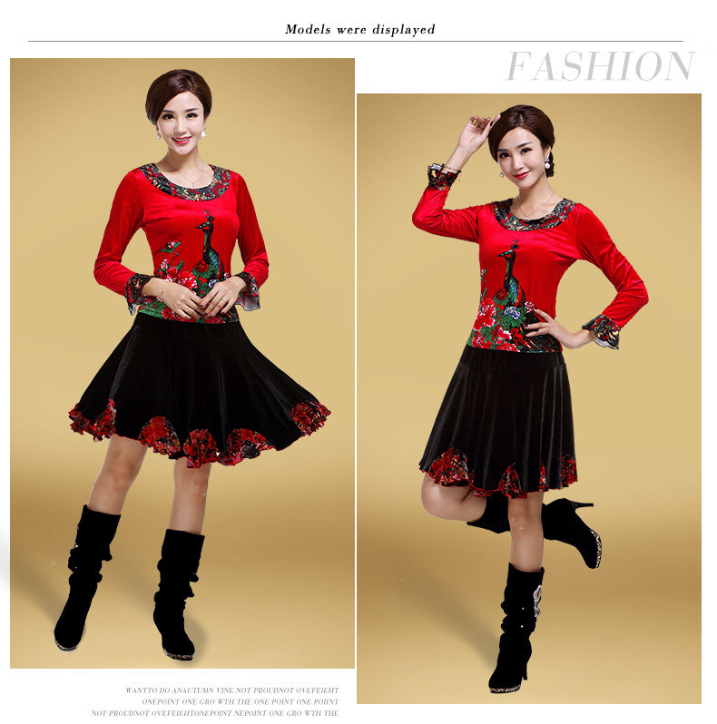 艳王 Демисезонный костюм, лонгслив, бархатное термобелье, для среднего возраста, большой размер, осенний