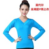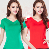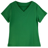 Лонгслив, футболка, зеленая танцующая спортивная одежда, V-образный вырез, короткий рукав