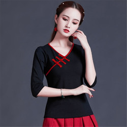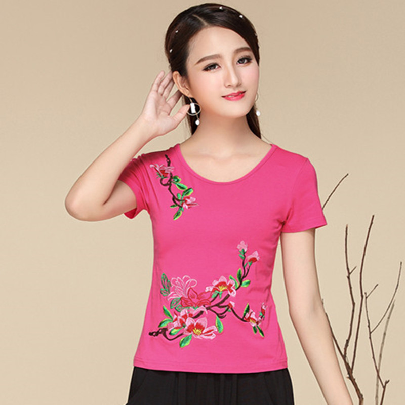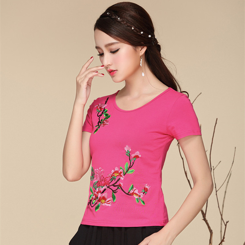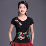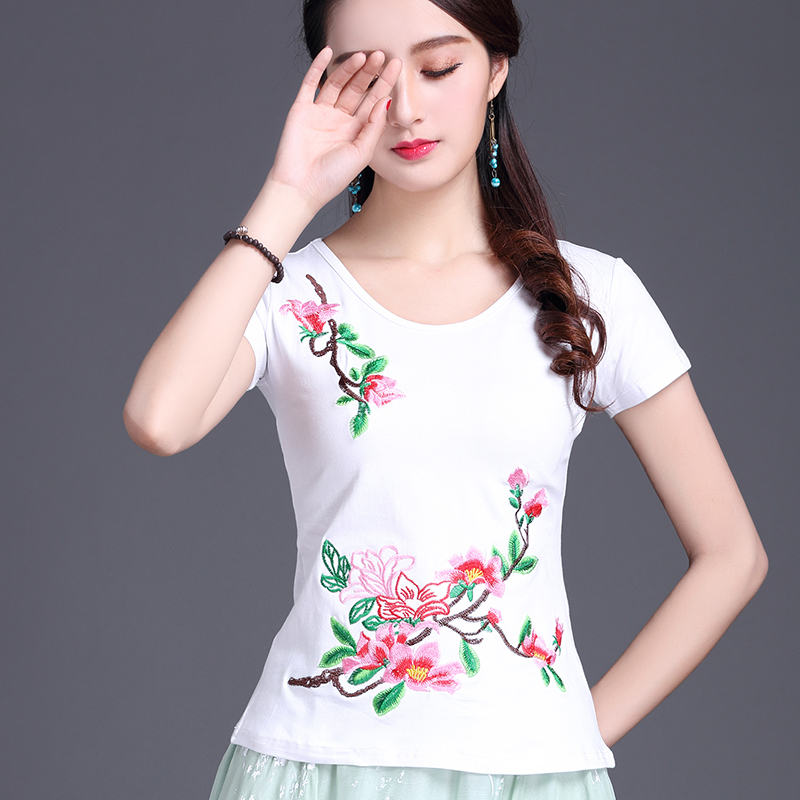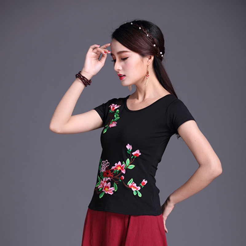 Этническая футболка, этнический стиль, по фигуре, круглый воротник, облегающий крой, с вышивкой