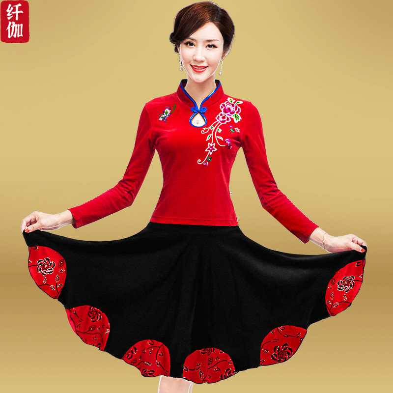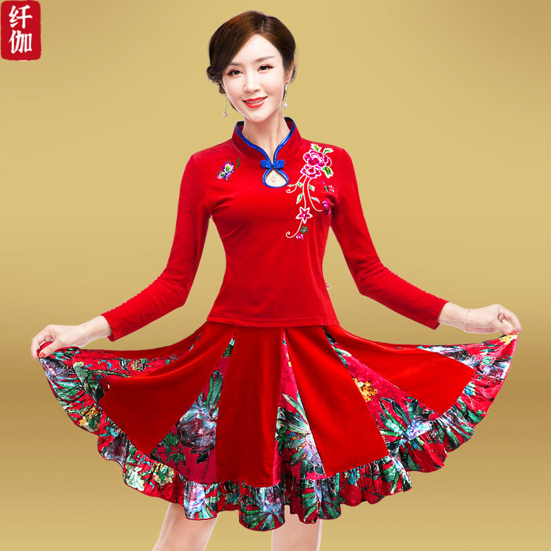 纤伽 Осенний комплект, ципао для пожилых людей, 2022, для среднего возраста