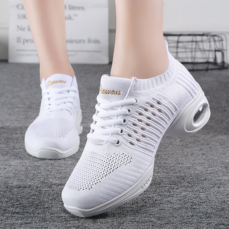 Белые модные дышащие летние танцующие туфли, мягкая подошва