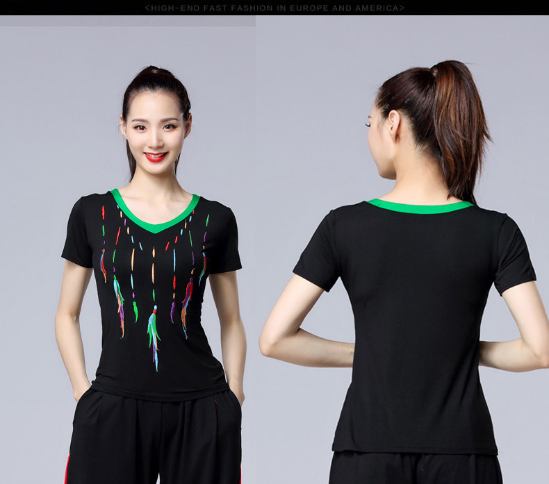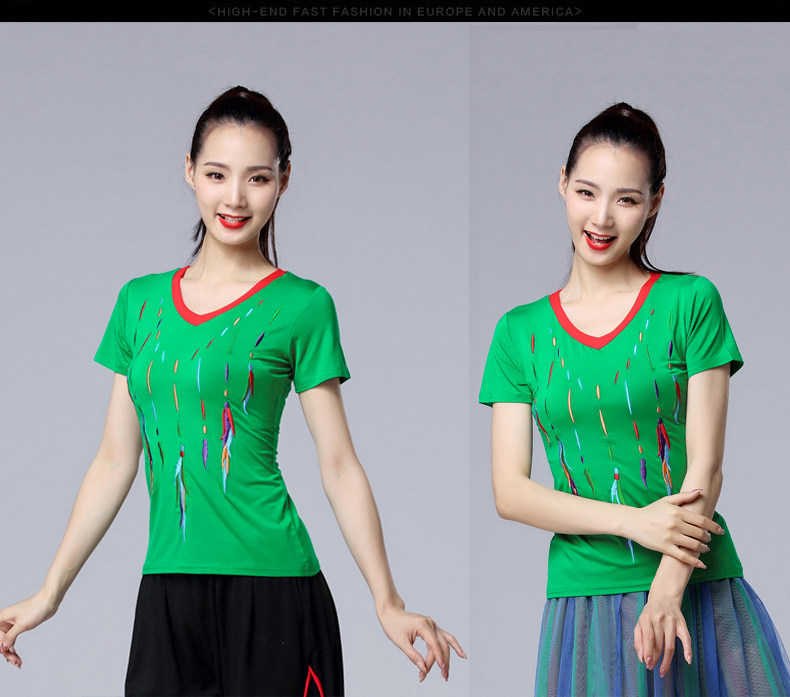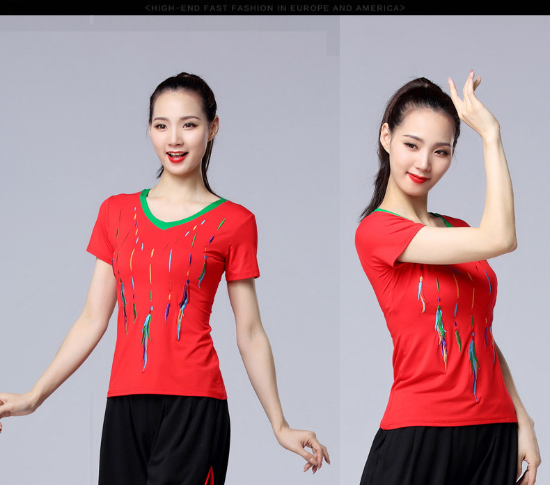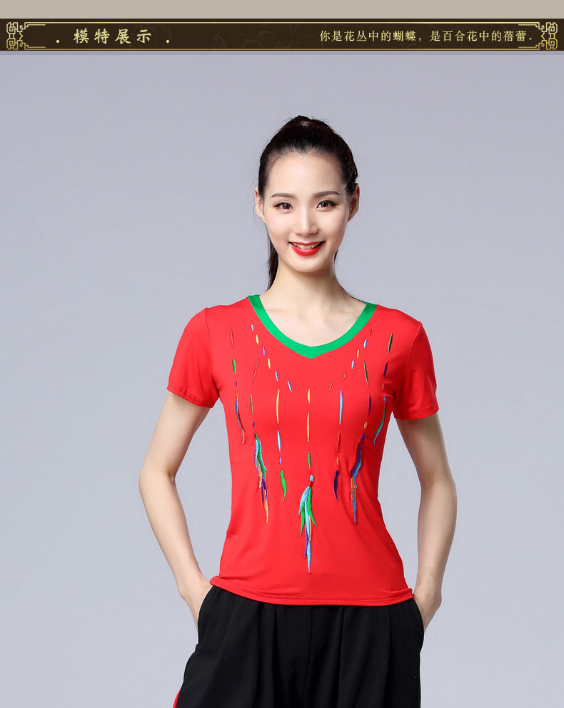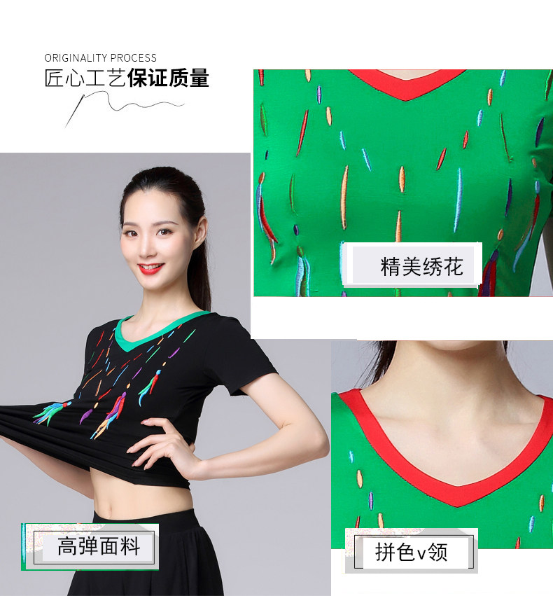 涪舞 2022 Летняя новая танцевальная одежда Модальная вышитая вышитая V-образная мода среднего возраста и пожилые квадратные танце