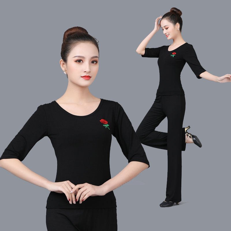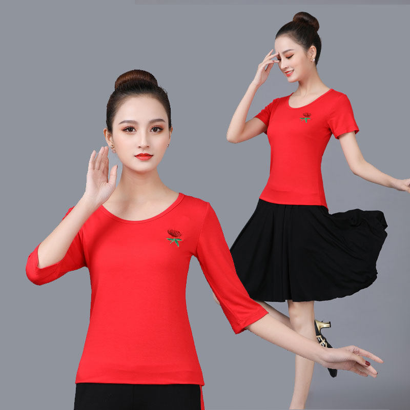 Весна и летняя квадратная танцевальная одежда топы модальная одежда для обучения хлопка среда и танцевальная одежда с короткими рукавами Универсальная спортивная одежда