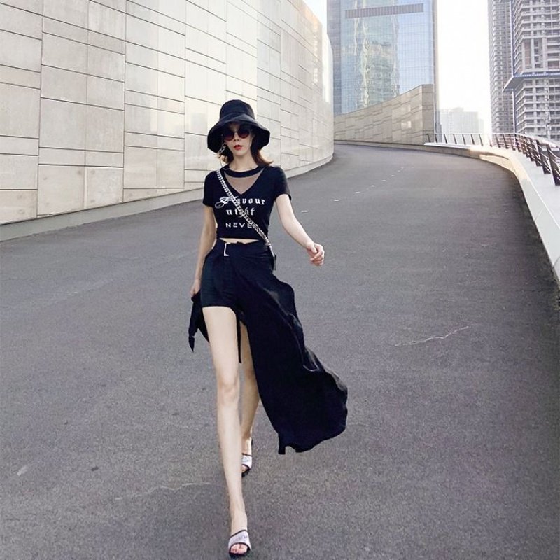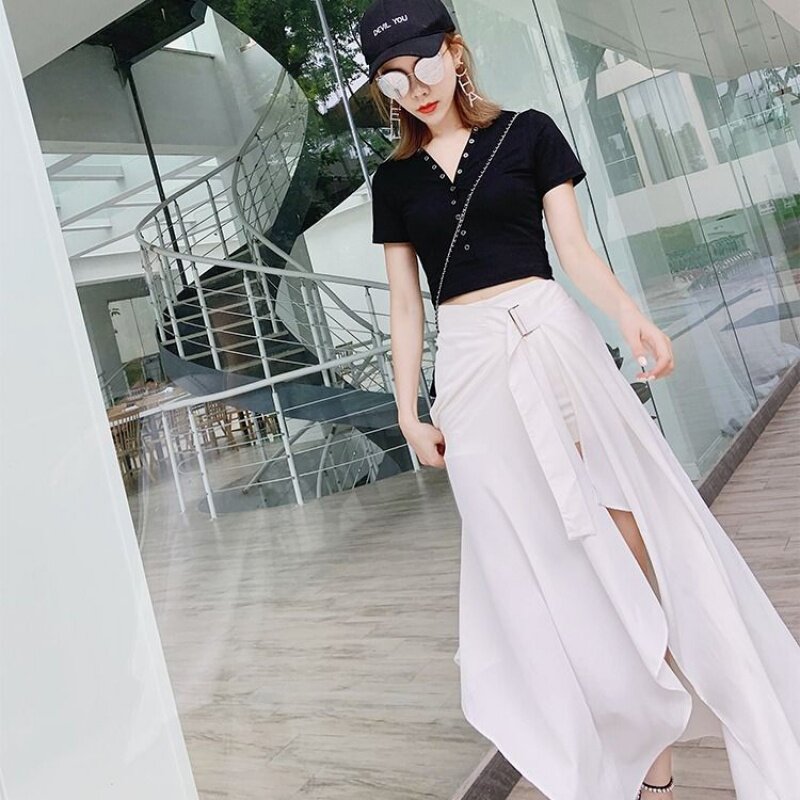 Комплект, длинная юбка, высокая талия, популярно в интернете