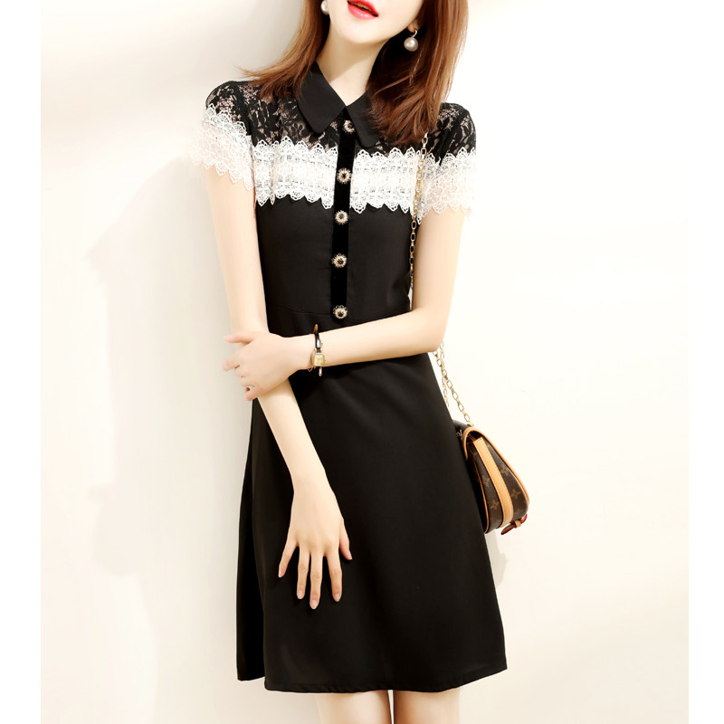 RAGR Кружевное летнее платье, шифоновая юбка, французский стиль, 2020, короткий рукав, А-силуэт