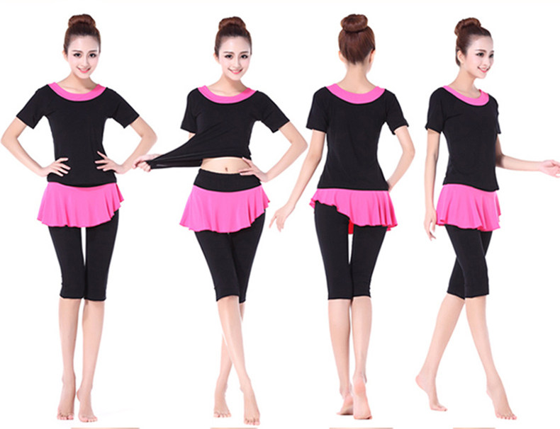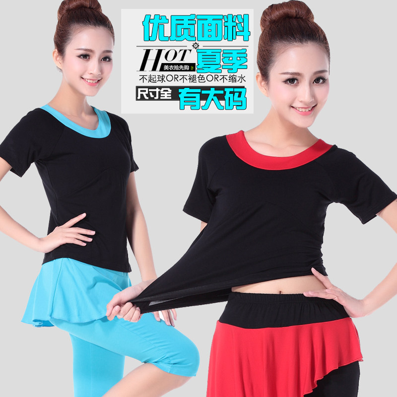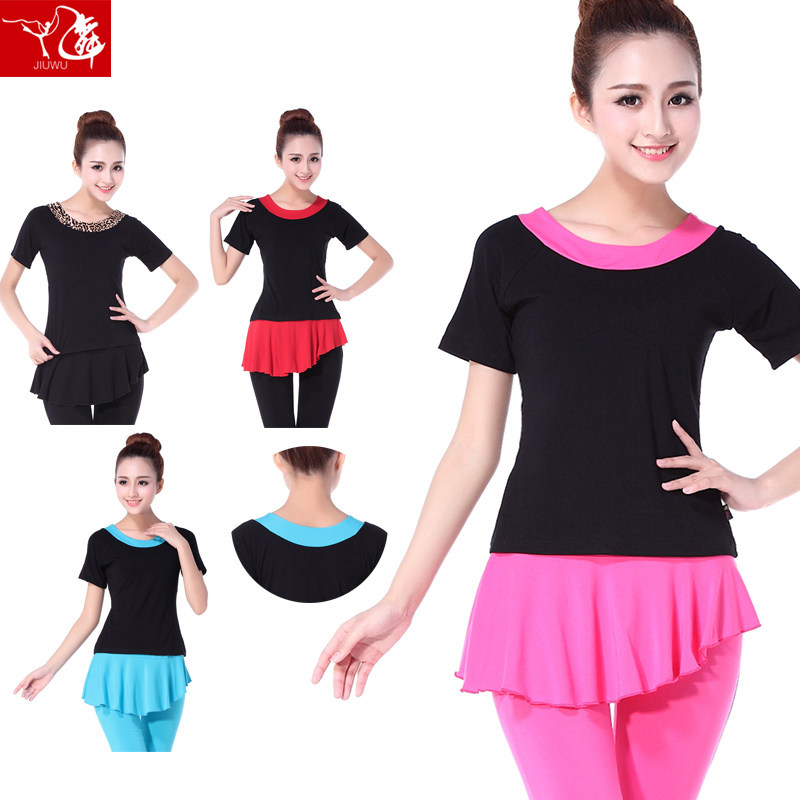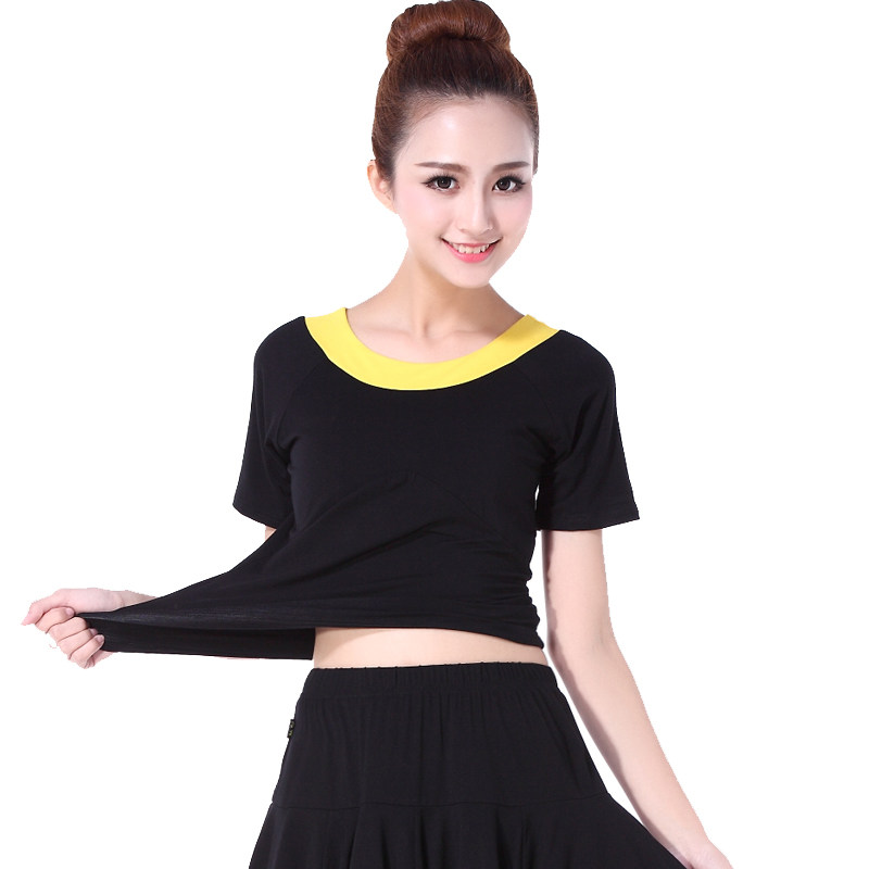 Танцующая одежда для йоги для спортзала, короткий рукав, с рукавом, круглый воротник, большой размер