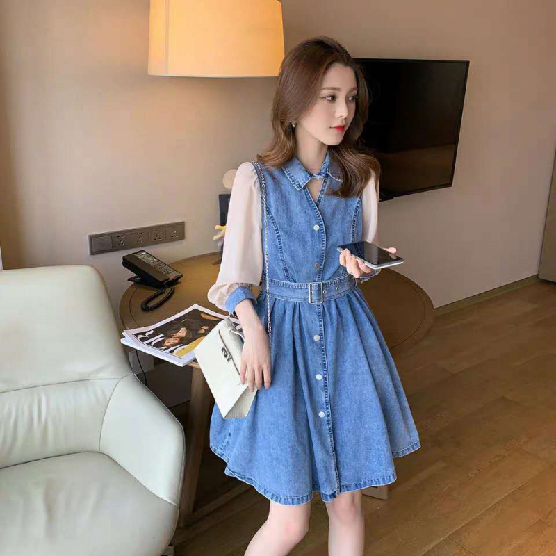 Летнее длинное шифоновое джинсовое платье, 2020, средней длины, подходит для подростков, свободный крой, оверсайз, по фигуре