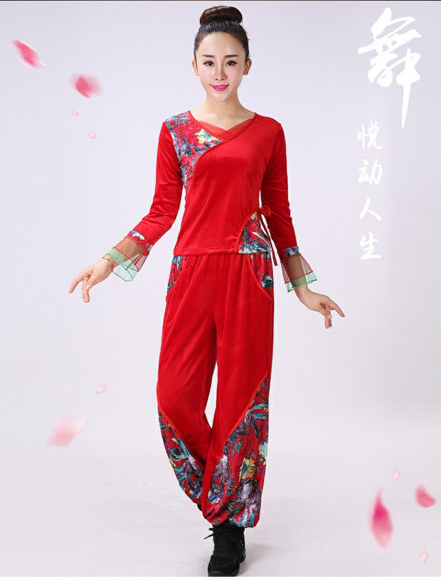 Демисезонный бархатный танцующий комплект для пожилых людей, штаны, костюм, для среднего возраста
