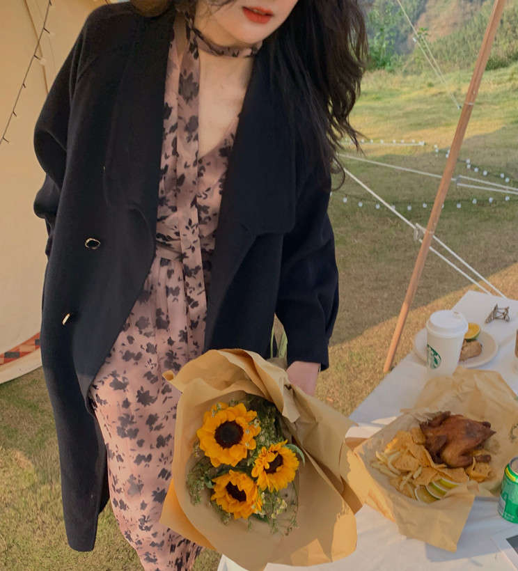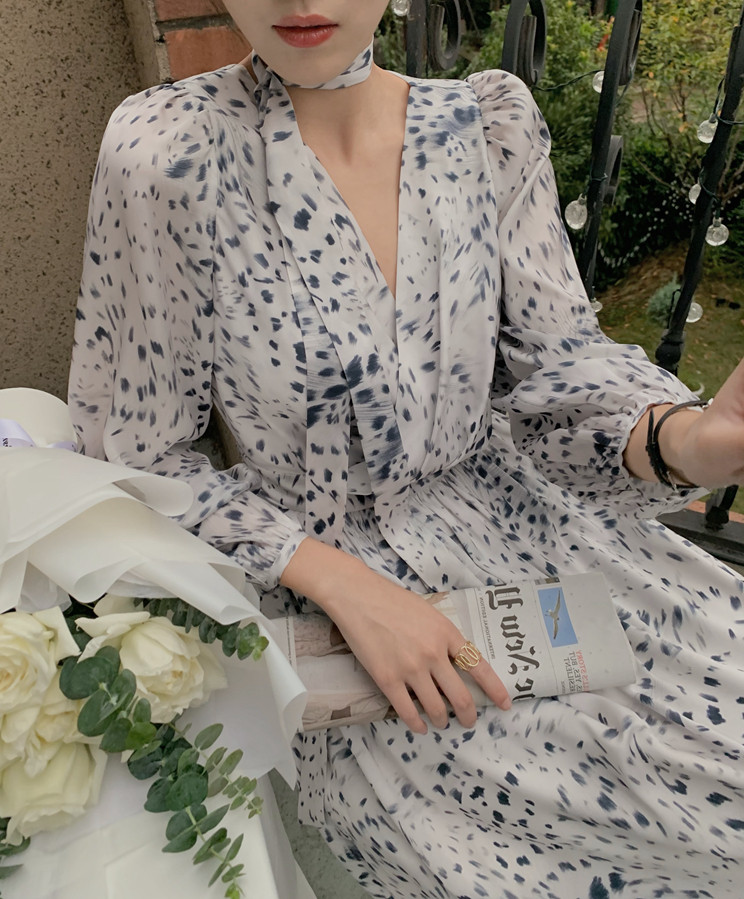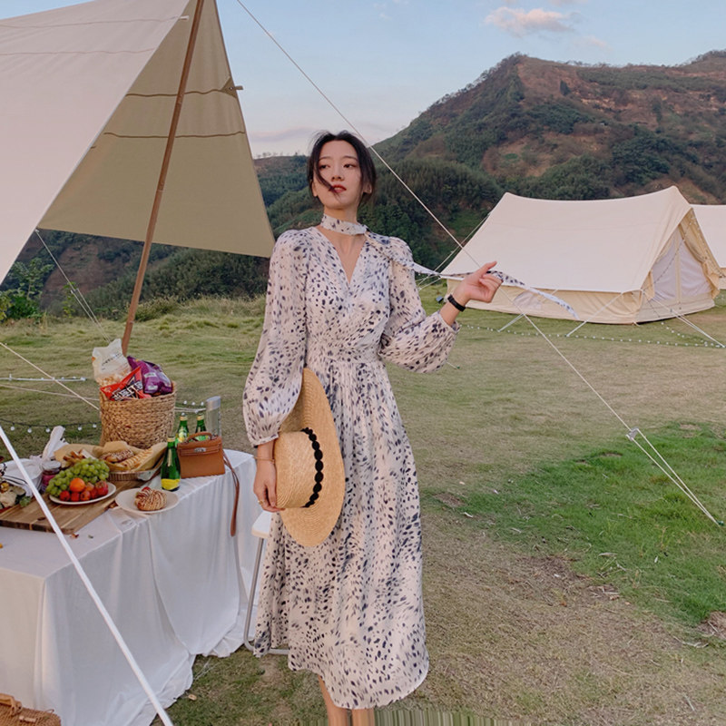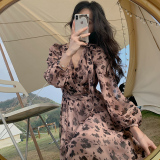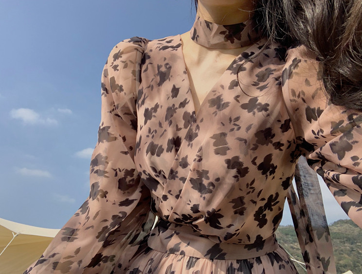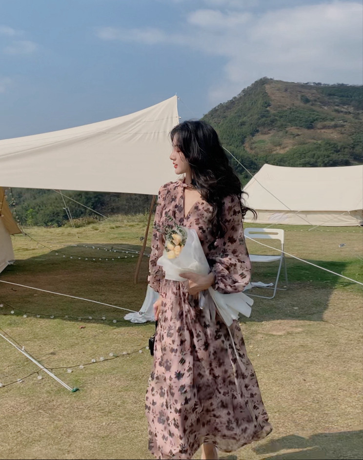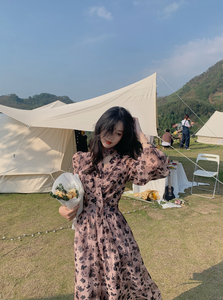 home daily Платье, шифоновая длинная юбка, коллекция 2021, французский стиль, яркий броский стиль, по фигуре, цветочный принт