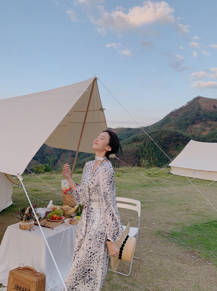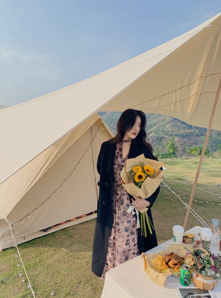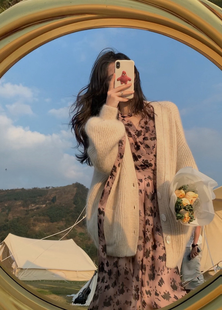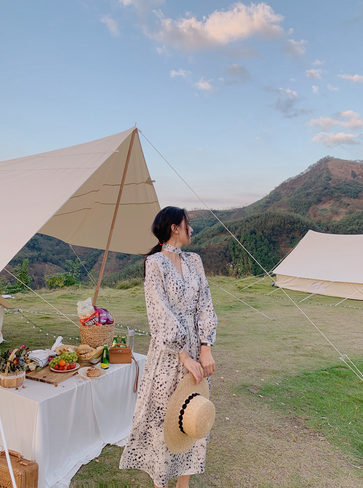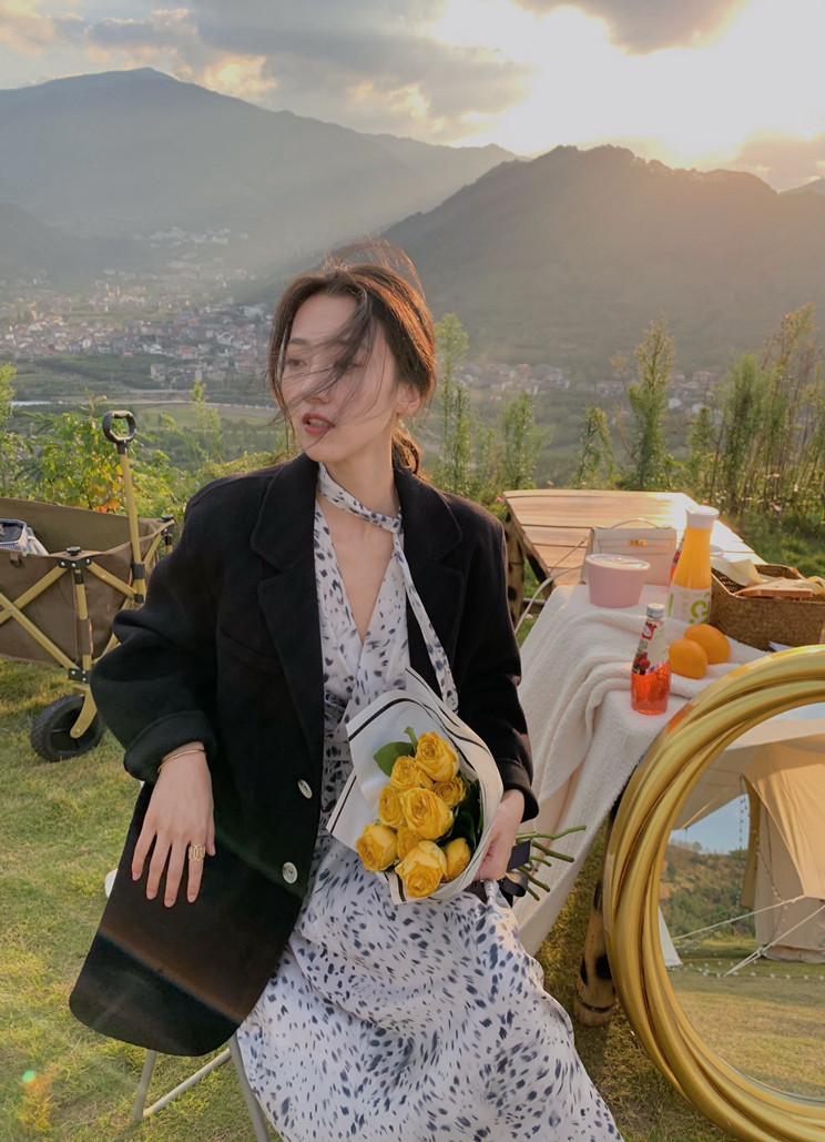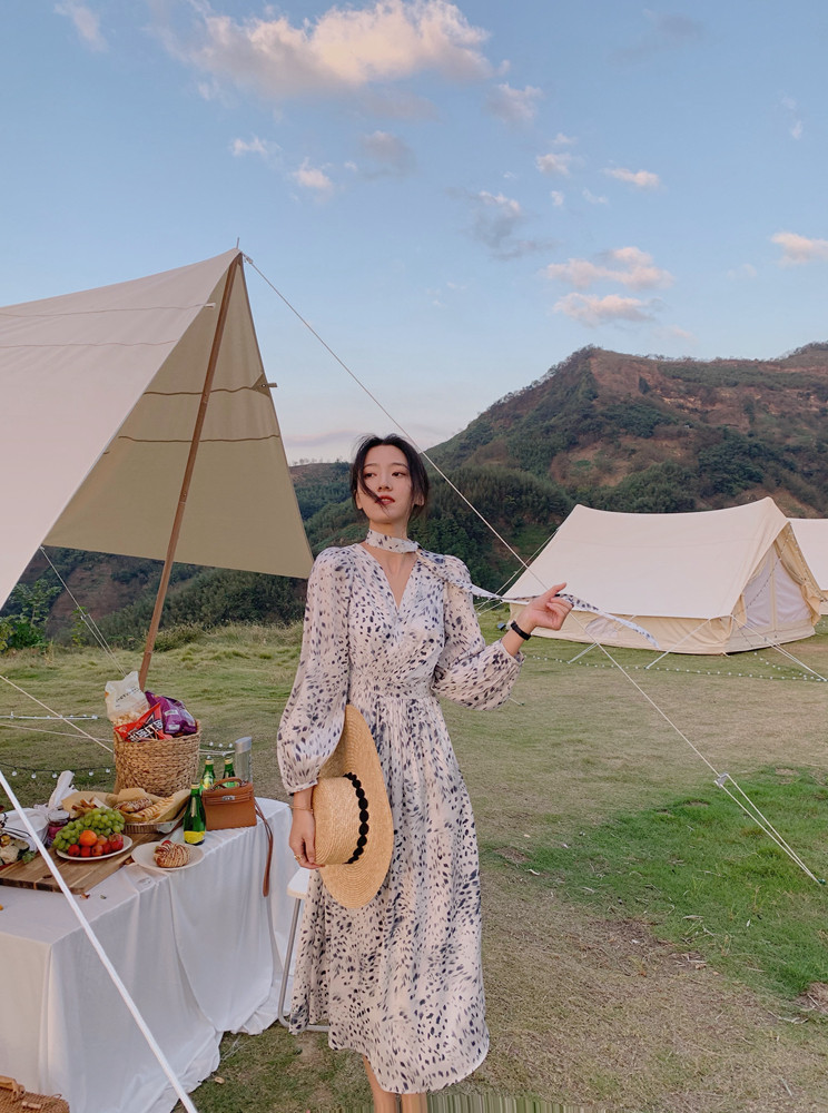home daily Платье, шифоновая длинная юбка, коллекция 2021, французский стиль, яркий броский стиль, по фигуре, цветочный принт
