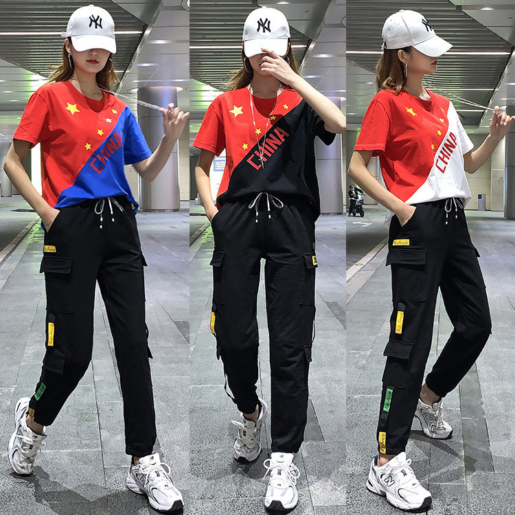 Летняя форма, спортивный спортивный костюм в стиле хип-хоп, короткий рукав