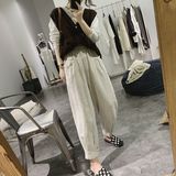 Весенние летние штаны для отдыха, оверсайз, свободный крой, высокая талия, из хлопка и льна