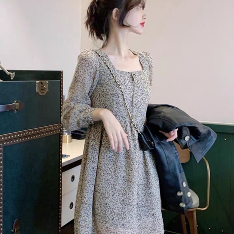 Осеннее платье, мини-юбка, в цветочек, коллекция 2021, подходит для подростков