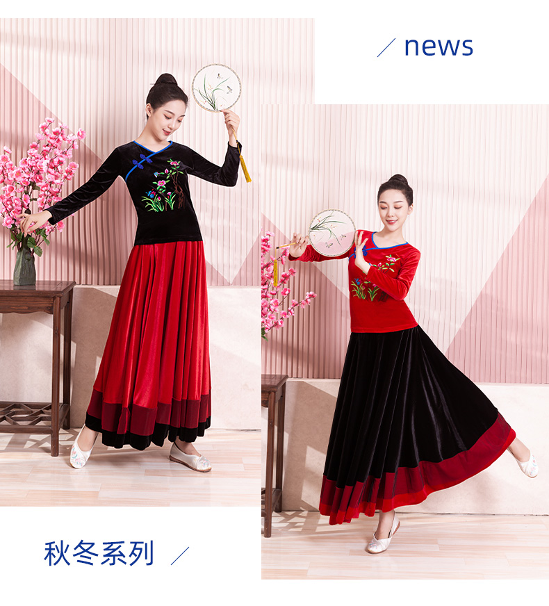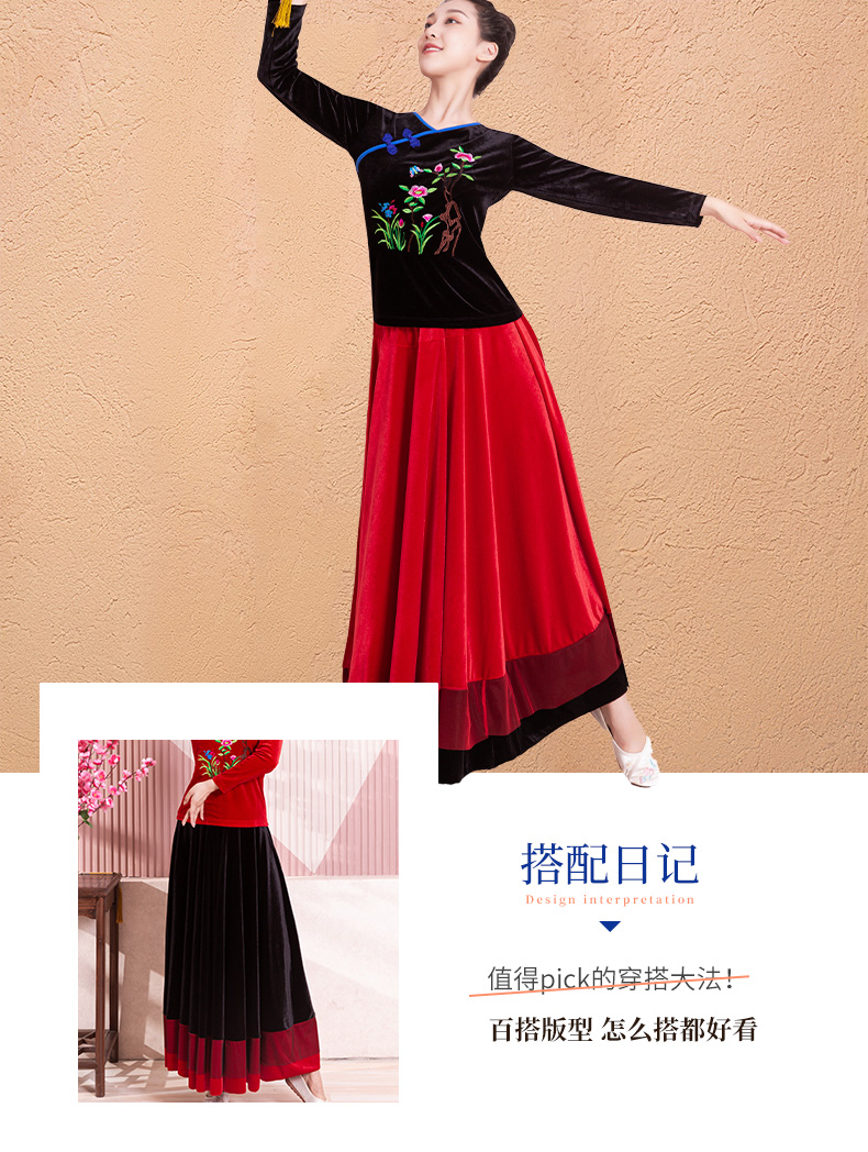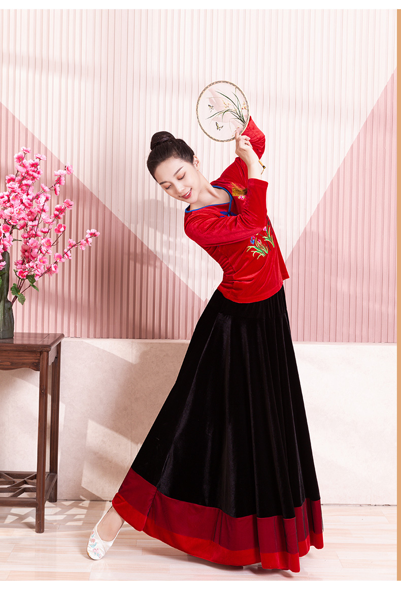 Классическая танцующая бархатная длинная юбка