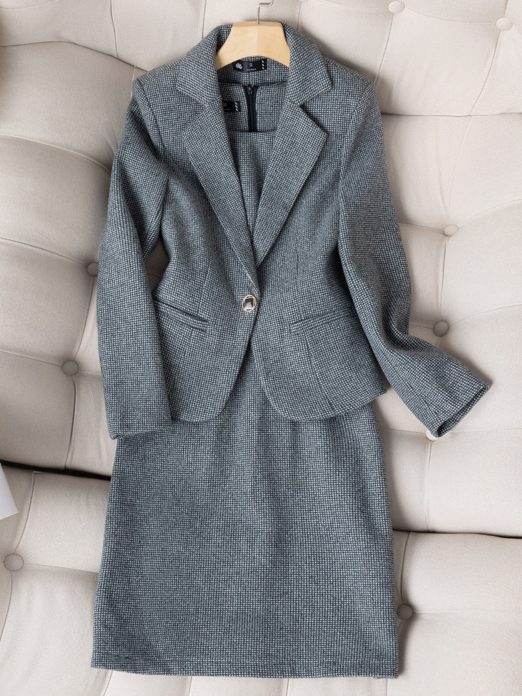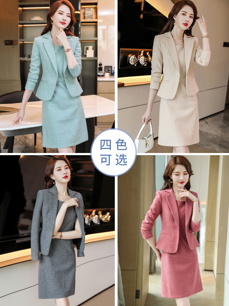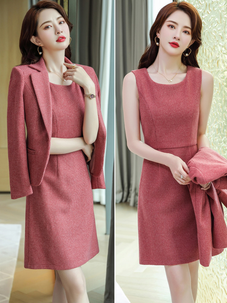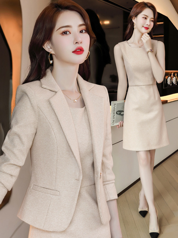 Элитный абрикосовый пиджак классического кроя, платье, осенний модный комплект, подходит для подростков