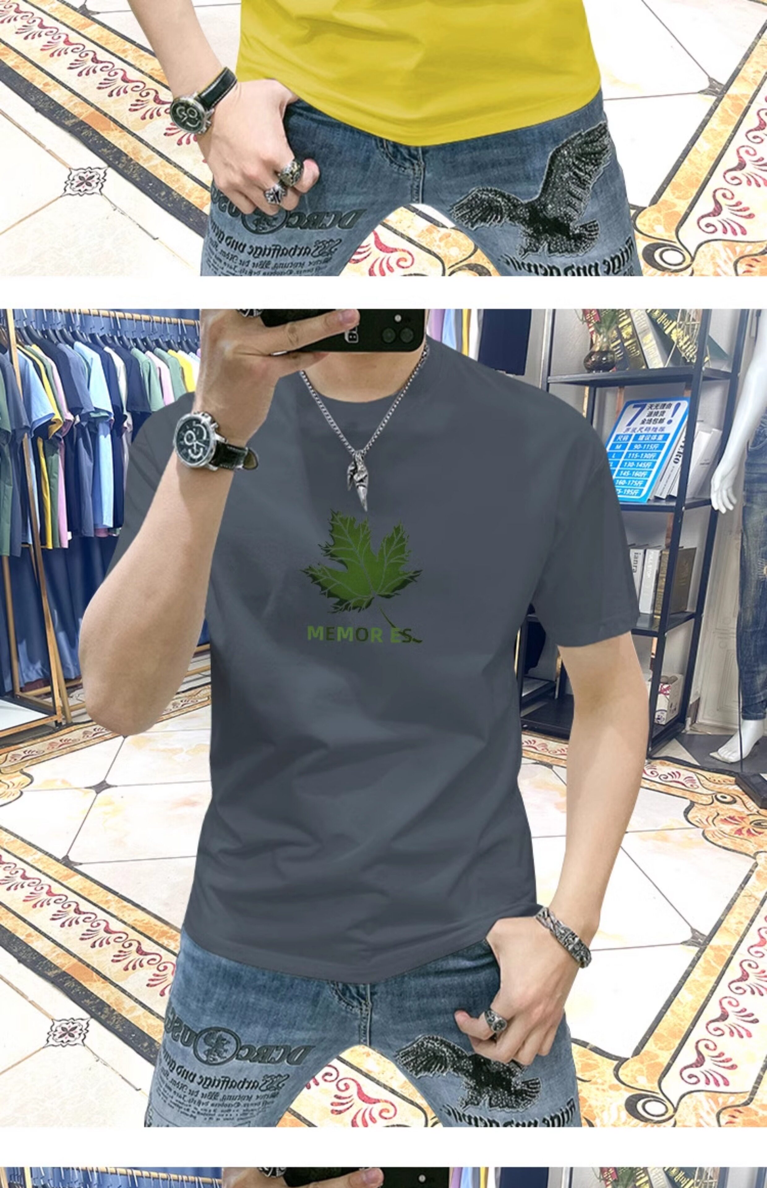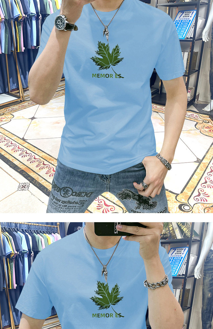 Европейская модная рубашка с короткими рукавами для мужчин модная универсальная красивая тонкая трехмерная печата 2024 Новая футболка с половиной рукава для мужчин