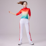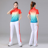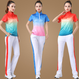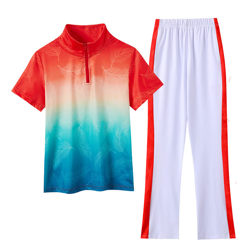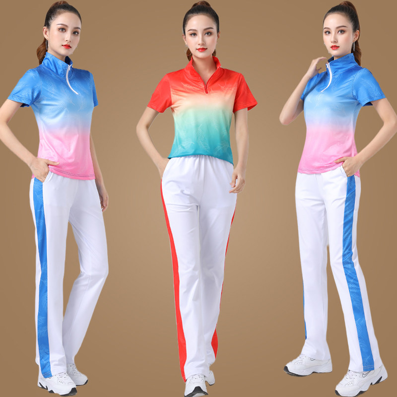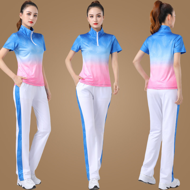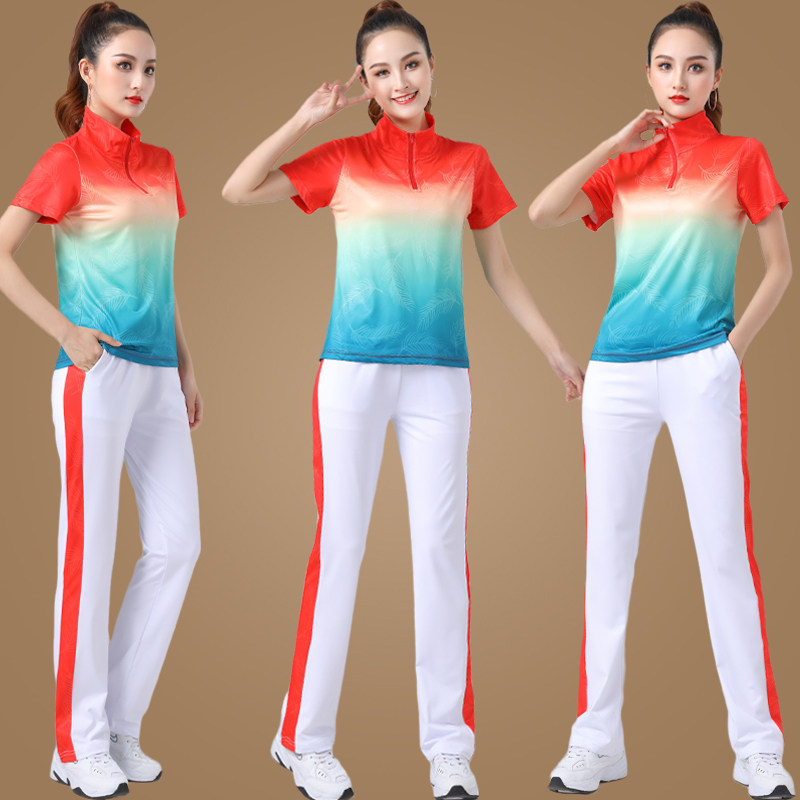 Спортивный костюм, летний танцующий комплект для спортзала, градиент, короткий рукав