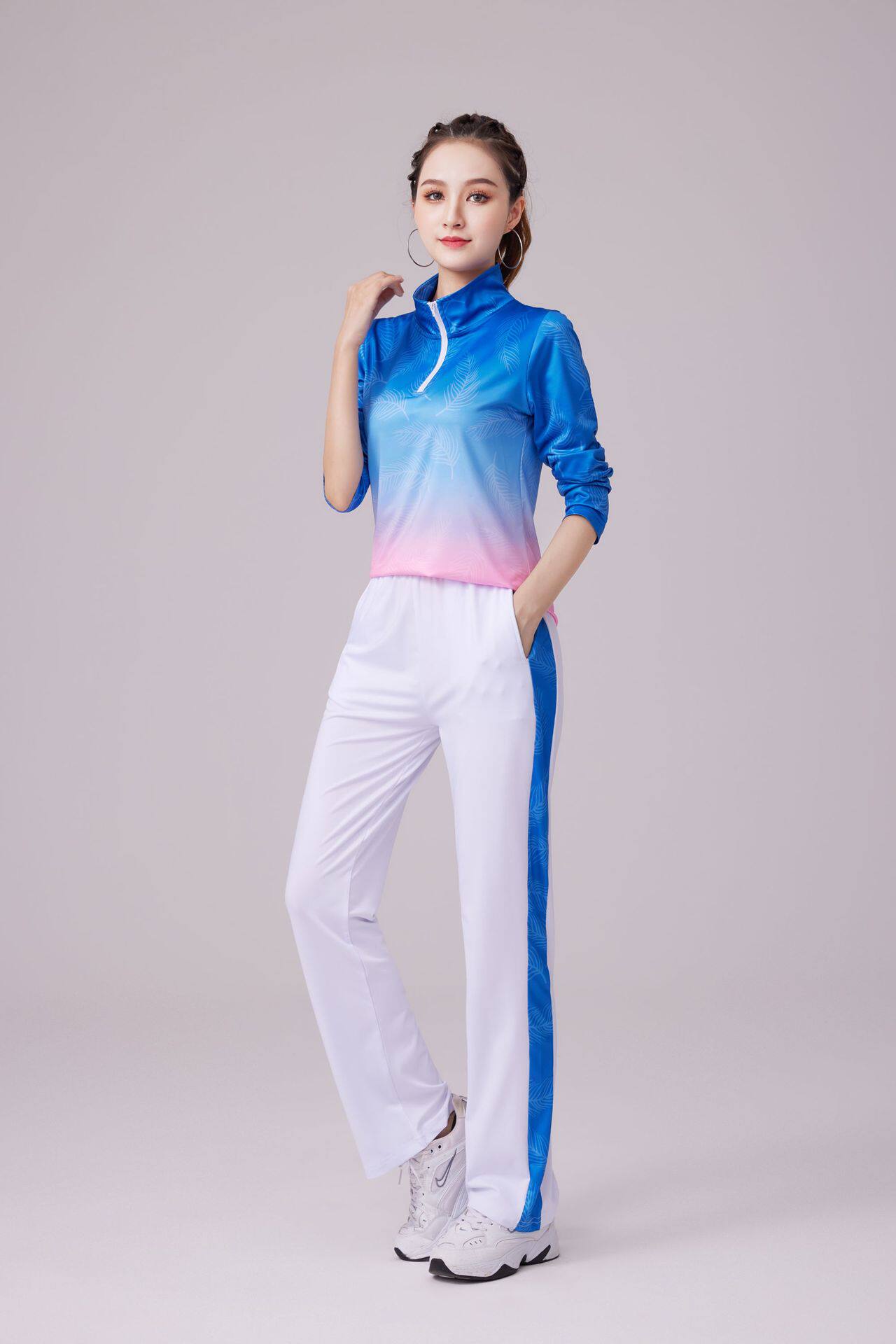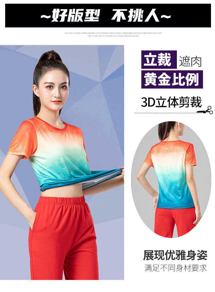 Спортивный спортивный костюм, быстросохнущий велосипедный шифтер (тормозная ручка), танцующий лонгслив для спортзала, градиент, для бега