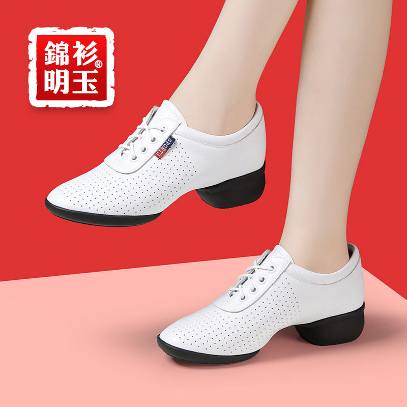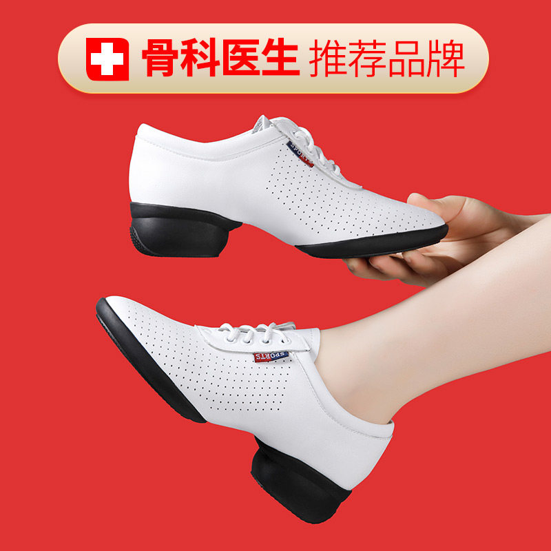Белая обувь, летние танцующие туфли, из натуральной кожи, мягкая подошва