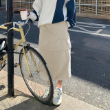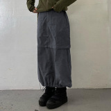 Женщина панк -миди юбка с твердым цветом на молнии карманная кавалевая юбка
