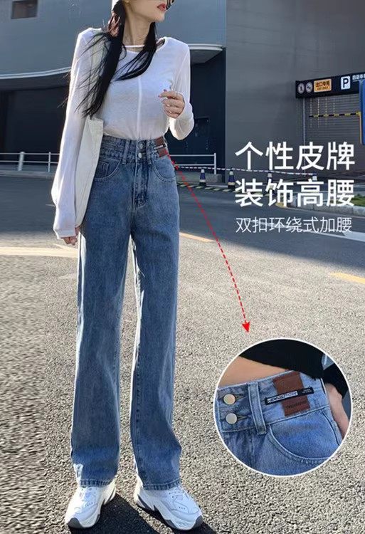 Штаны, осенние джинсы, леггинсы, высокая талия, коллекция 2023, подходит для подростков, свободный прямой крой