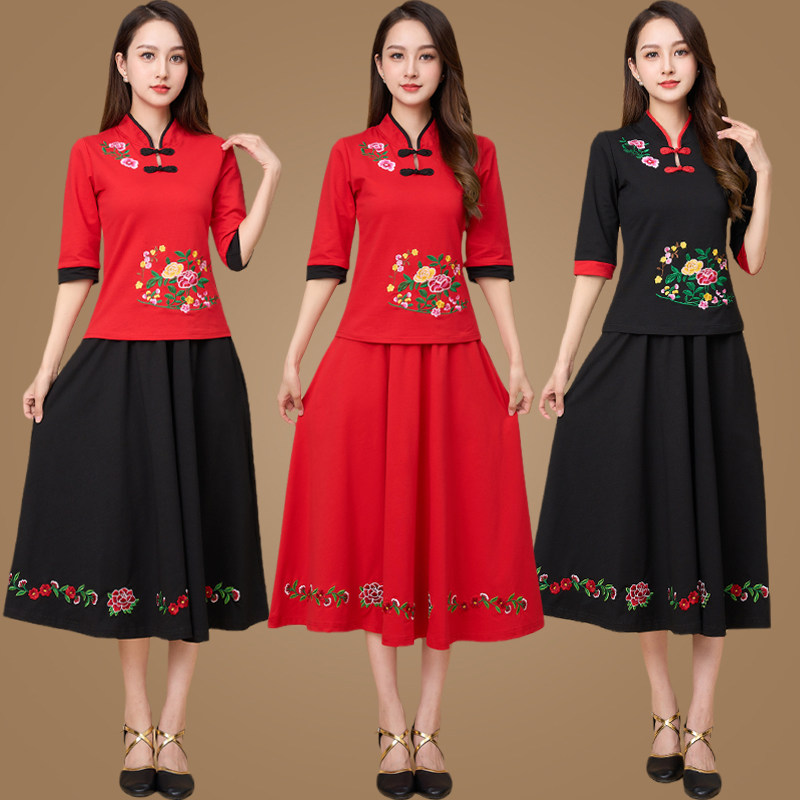 Летний осенний костюм, классический комплект, длинная юбка